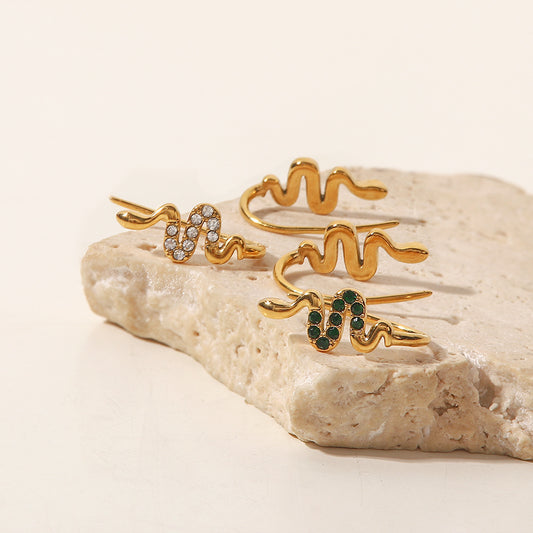 5pcs 18K Gold Stainless Steel Snake Set With Diamond Piercing Threaded Earrings Earrings Hipster Style Creative Clip Earrings