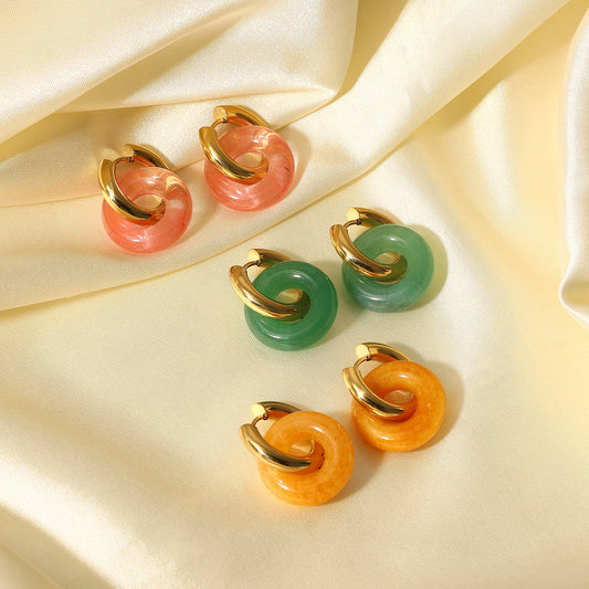 5pcs New Fashion Vintage Natural Stone Ring Earrings 14K Gold Plated Stainless Steel Earrings Style Earrings For Women
