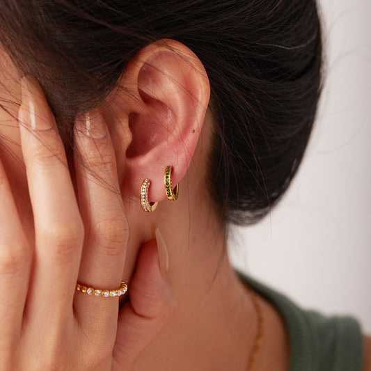5pcs New Fashion Women's Earrings Stainless Steel 18K Gold Plated Mini Green Zircon Ring Earrings