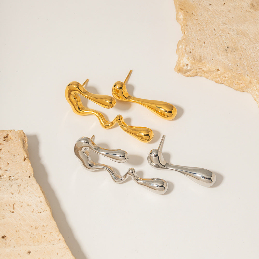 5pcs 18K Gold Plated Stainless Steel Irregular Drop Shape Design Earrings Women's Fashion All-Matching Geometric Earrings