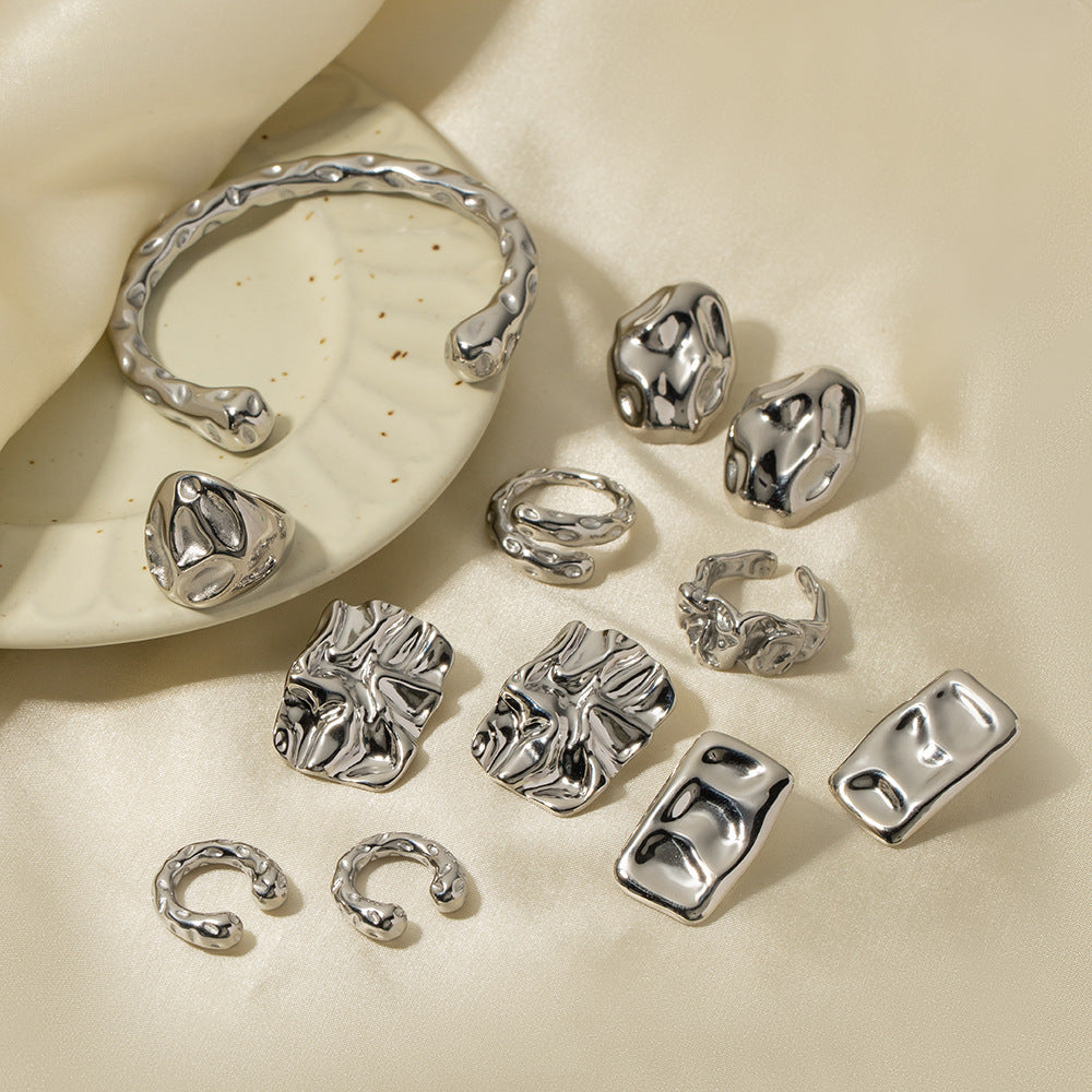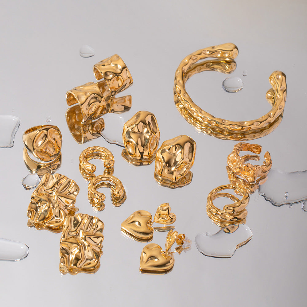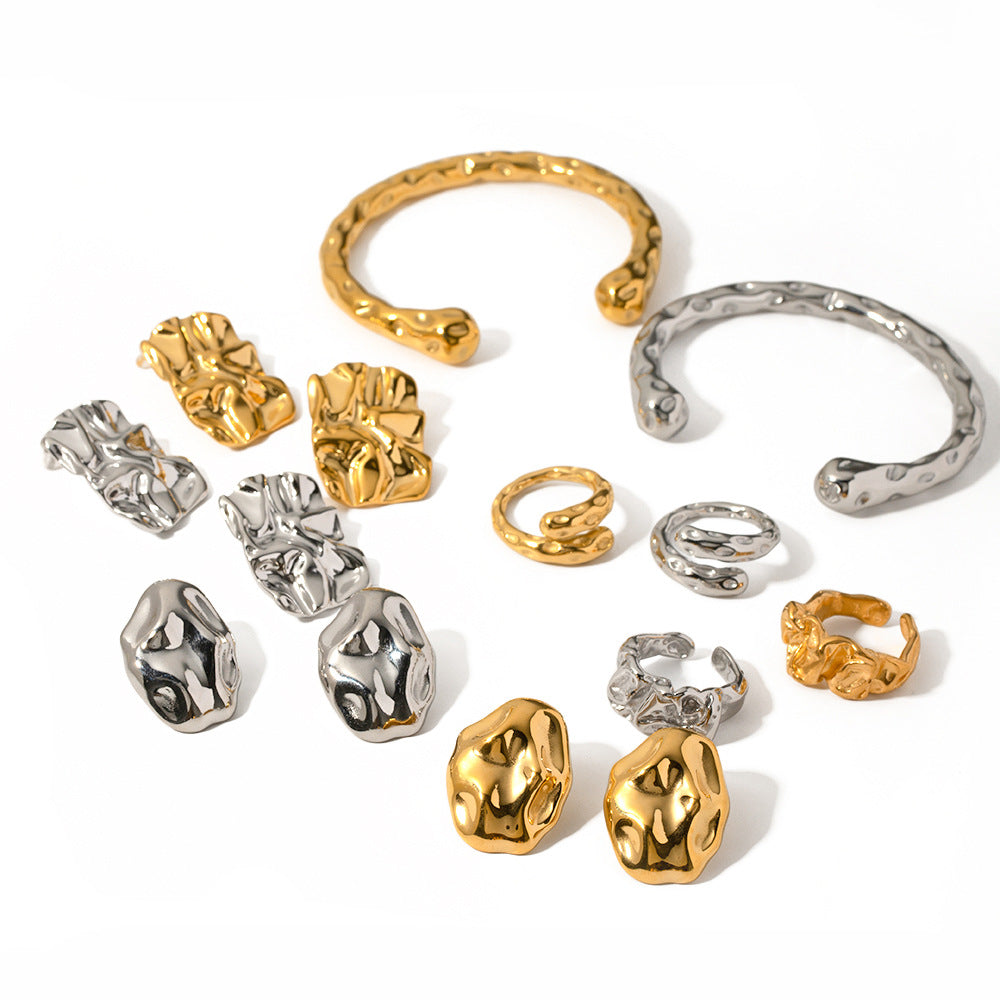 5pcs 18K Gold Plated Stainless Steel Irregular Hammer Stud Earrings Women's Fashion Timeless Earrings