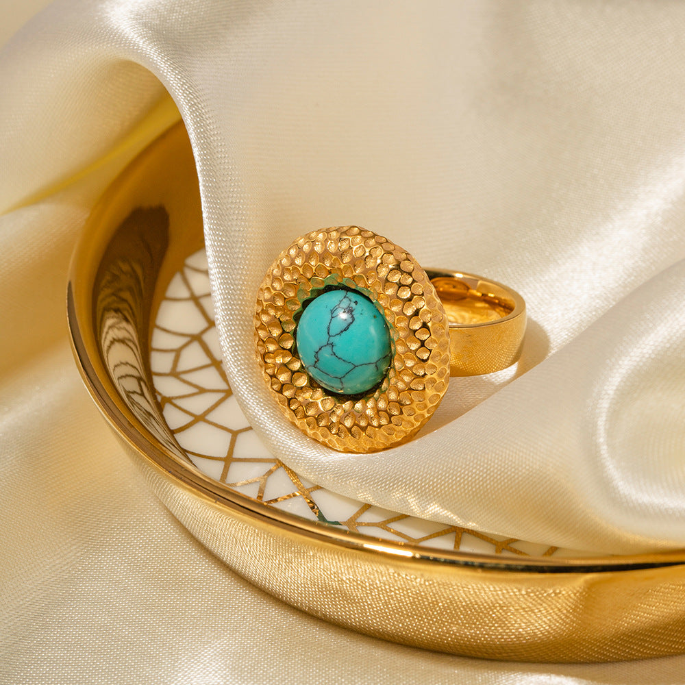 5pcs Elegant Fashion Jewelry 18K Gold Round Hammer Ring Stainless Steel Ring Jewelry