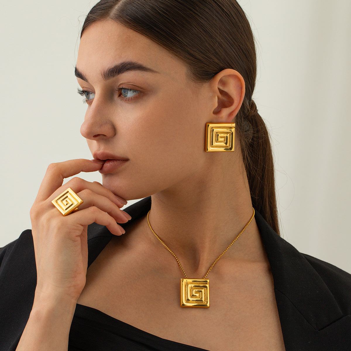 5pcs Necklace 18K Gold Stainless Steel Reverted Pendant Necklace Necklace For Women