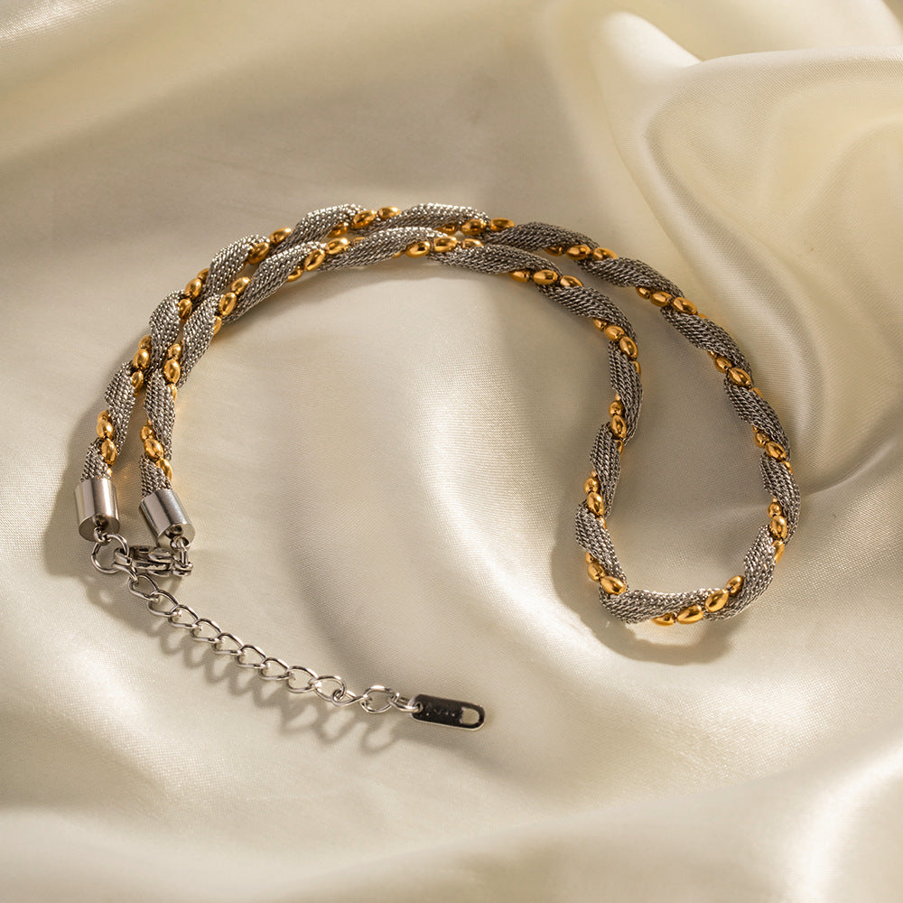 5pcs Style 18K Gold Plated 316 Stainless Steel Two-Color Necklace With All Trends Do Not Fade Niche Jewelry