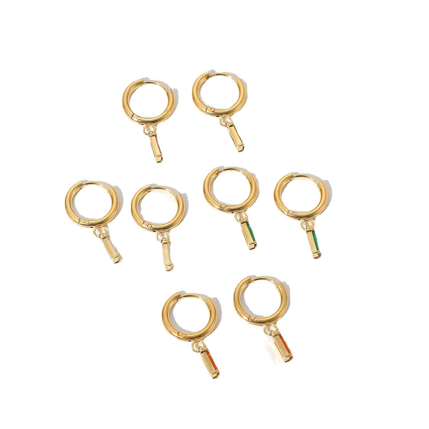 5pcs Supply Stainless Steel Earring Element Ring Square Green And Red Pendant Earring Earrings For Women High-Grade Sense Of Temperament