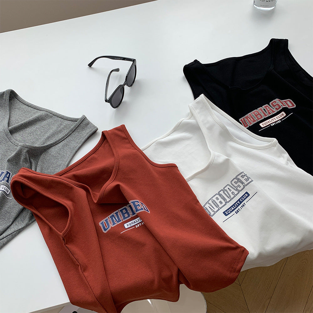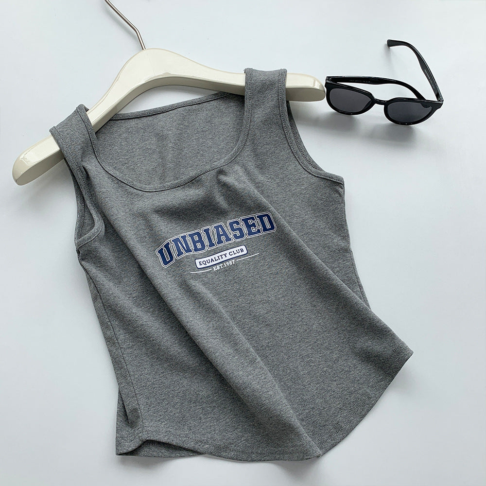 Retro Cotton Vest Women's Slimming U Collar Sleeveless T-Shirt Summer Wear Slim Short Halter Top
