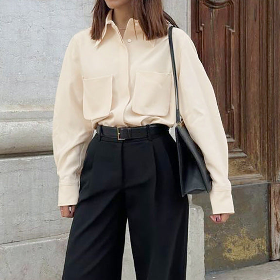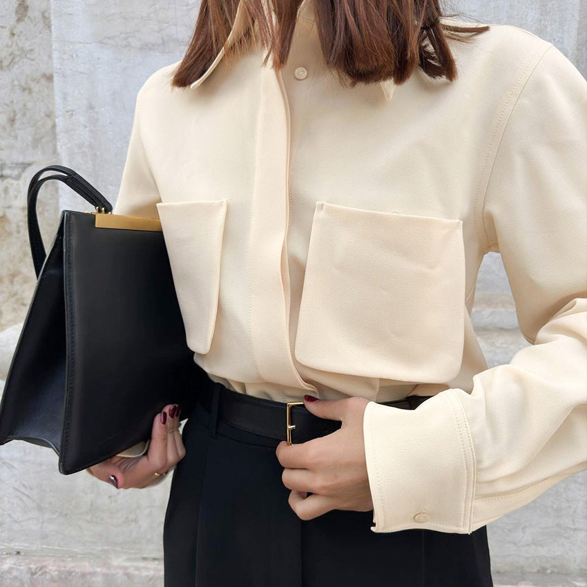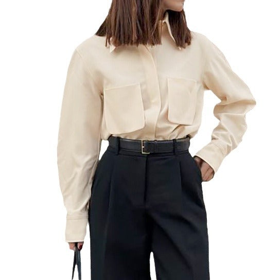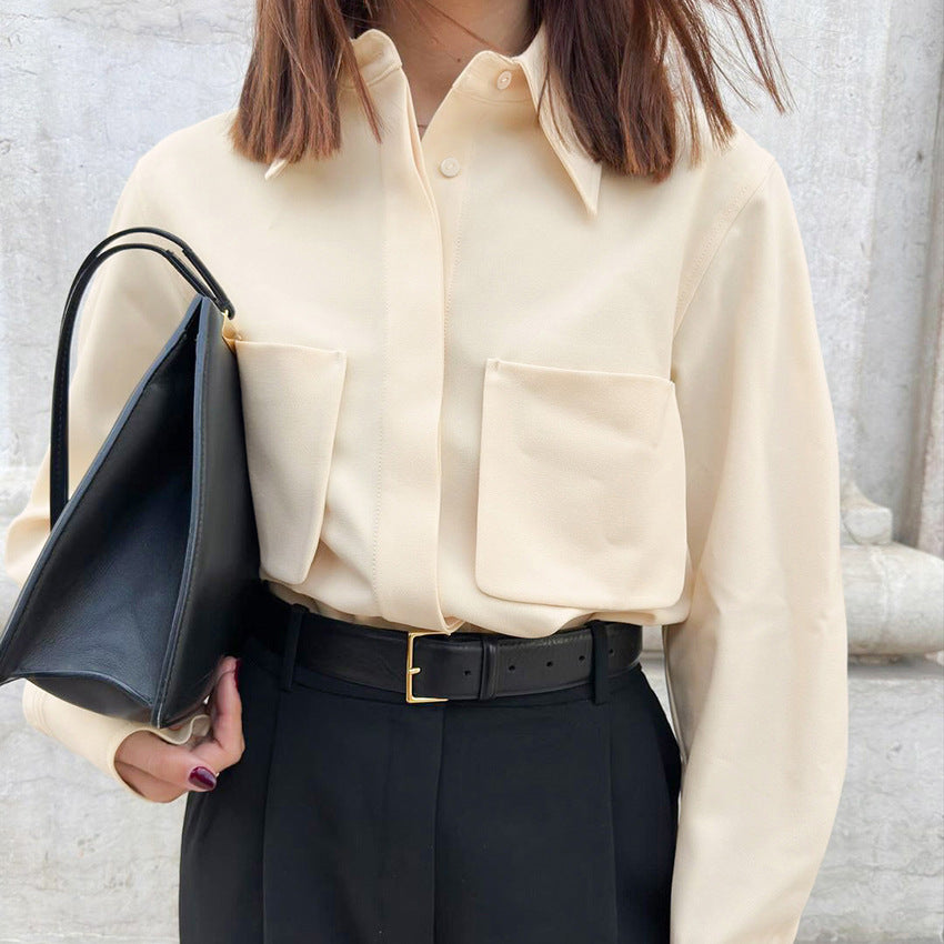 Apricot Lapel Temperament Design Commuter Women's Shirt New Spring Fashion Top Women