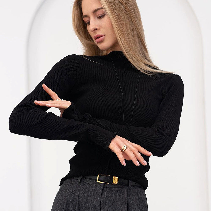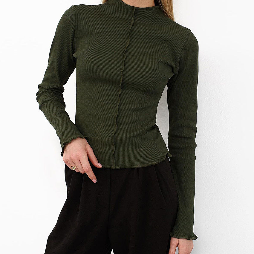 Autumn And Winter New Knitted Simple T-Shirt Stitching Design Women's Casual With Commuter Ladies Blouse