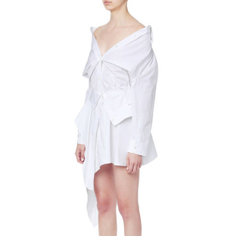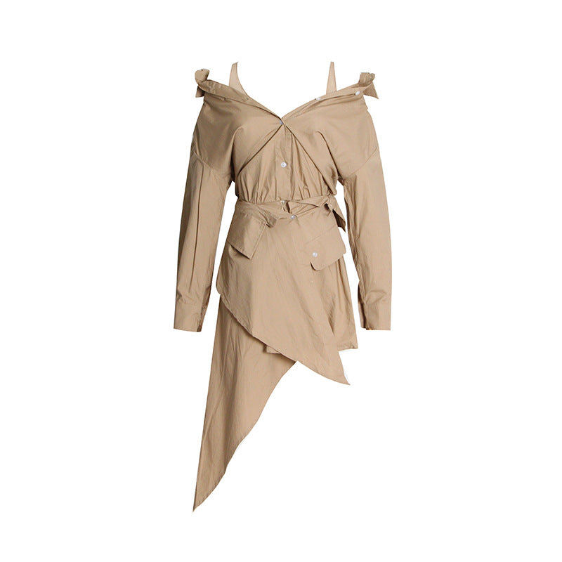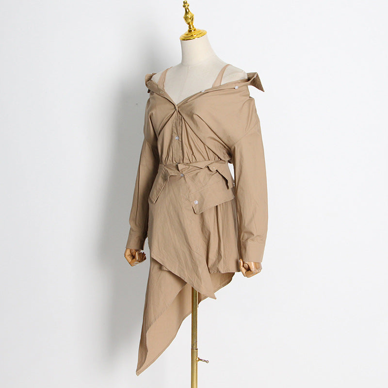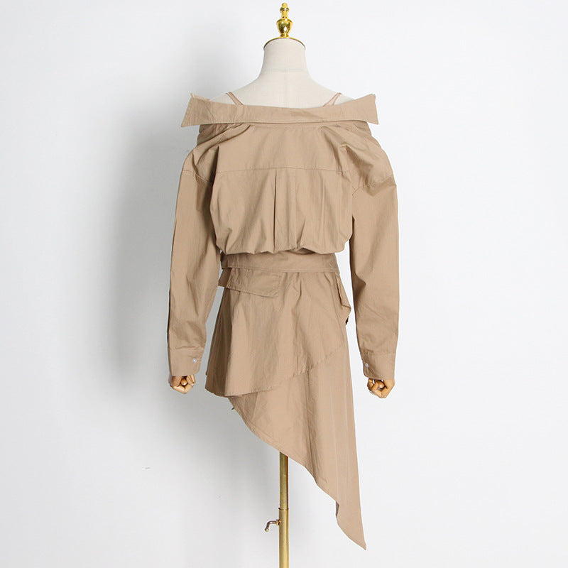 Autumn New Fashion Sexy One-Line Shoulder Lapel Single-Breasted Design Waist Down Hem Irregular Blouse Blouse For Women