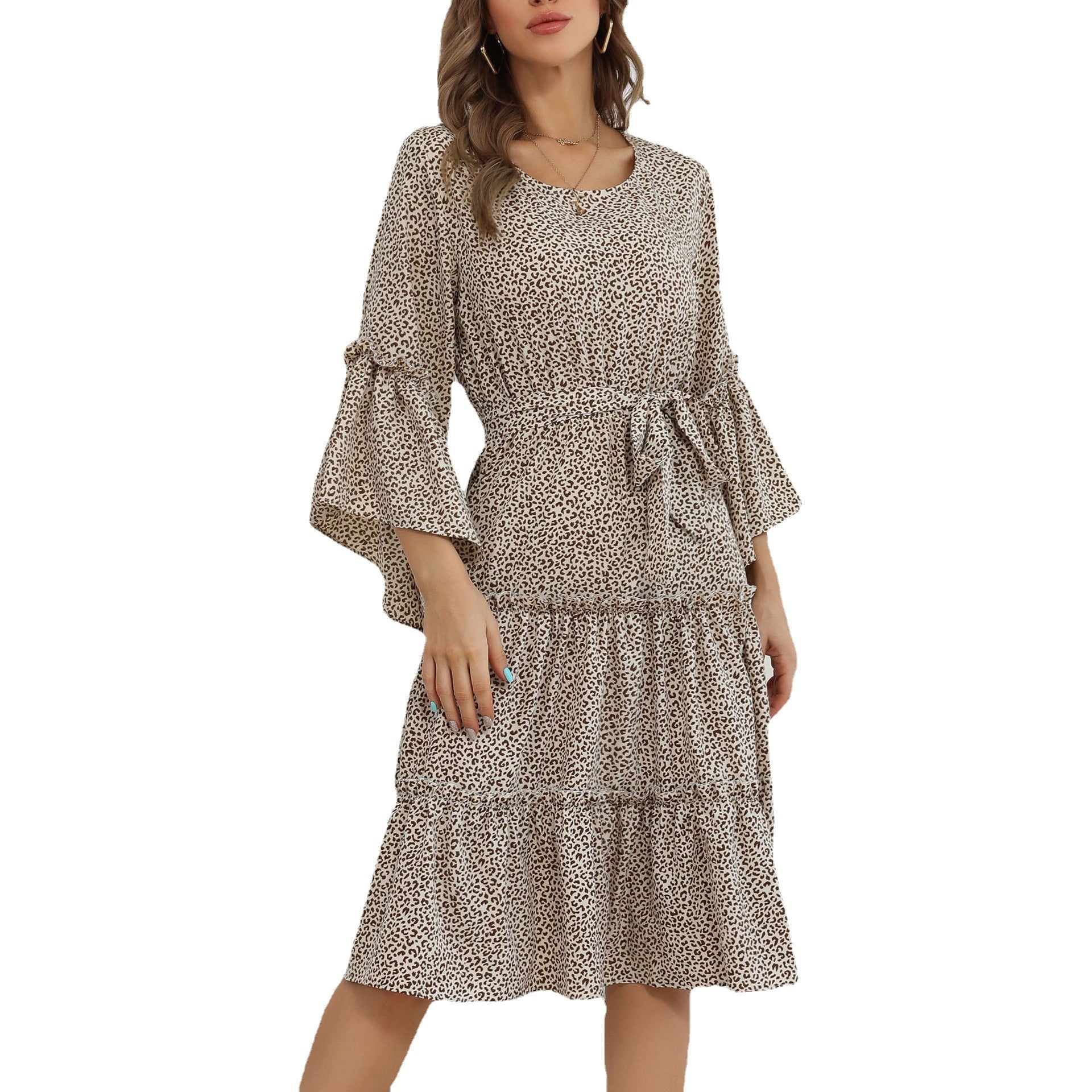 Autumn New Women's Dress Lotus Sleeve Round Neck Leopard Print Dress