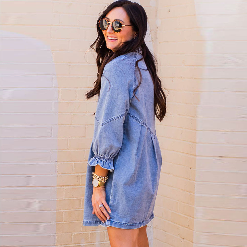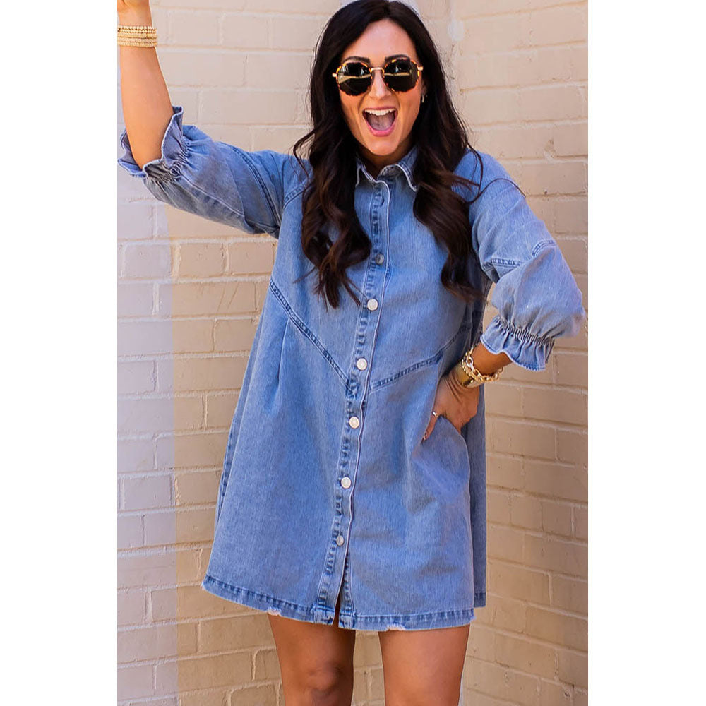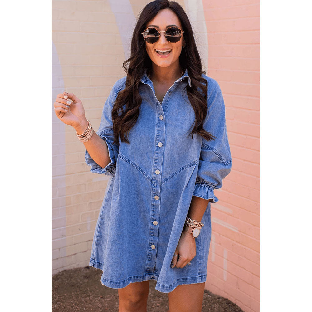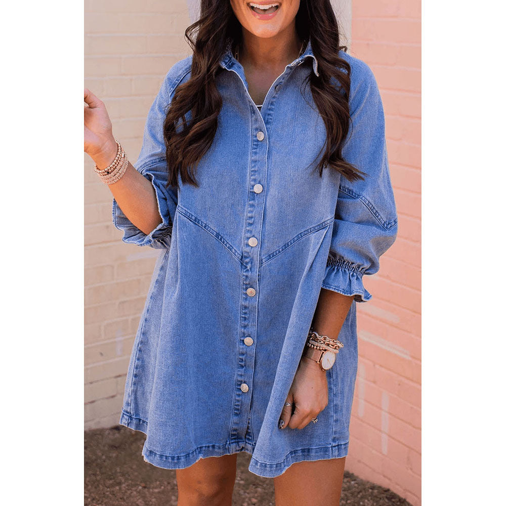 Autumn New Single-Breasted Denim Dress Female Dark Blue Lapel Skirt