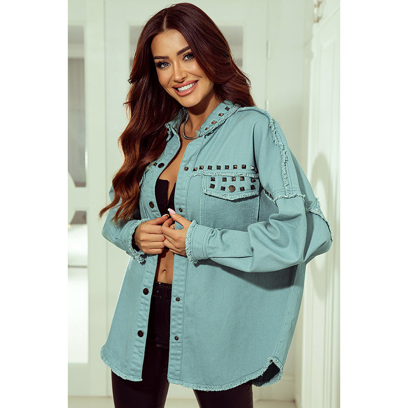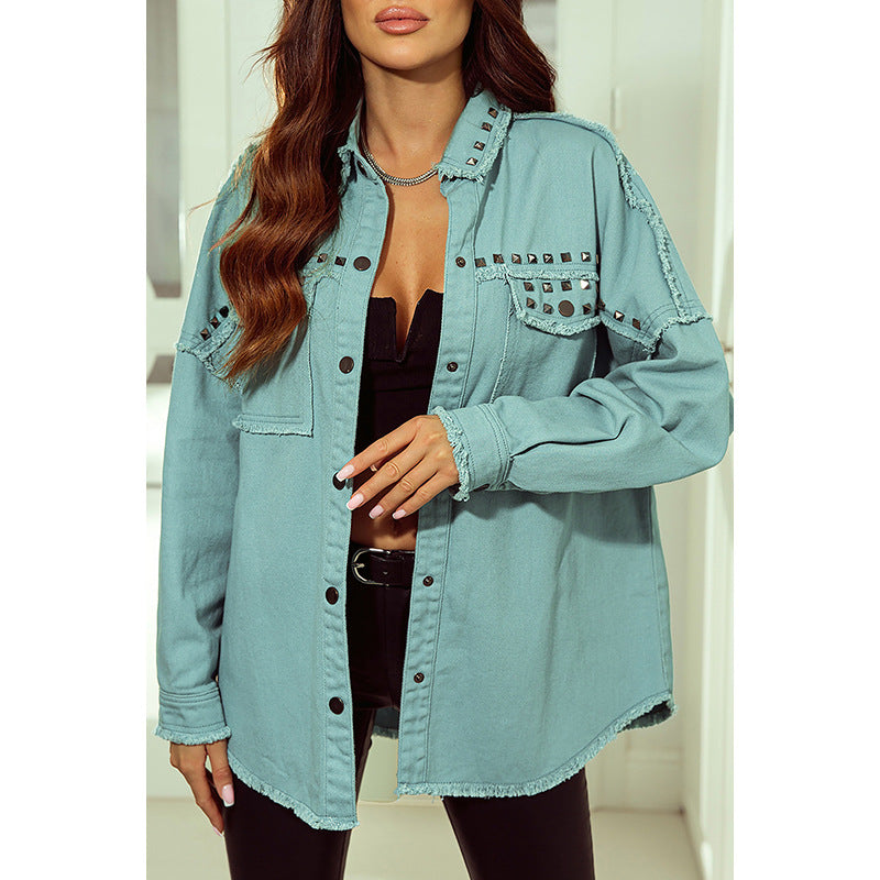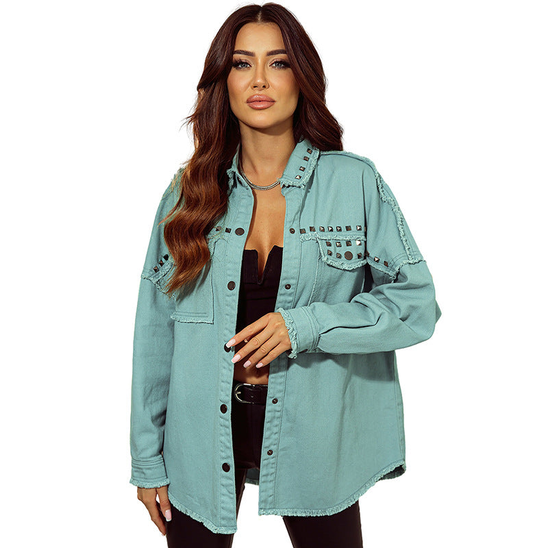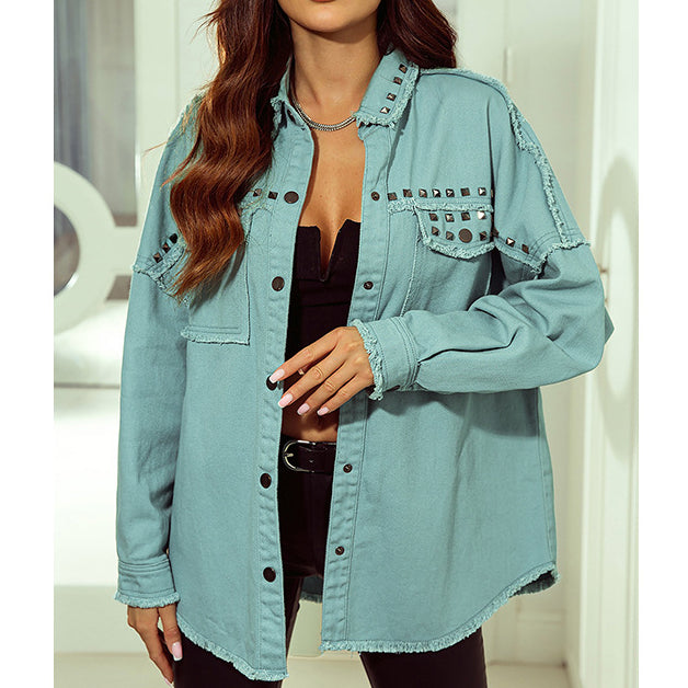 Autumn New Solid Color Denim Coat Female Personality Woolen Rivet Jacket Female