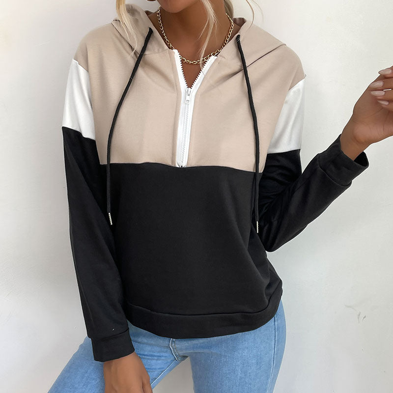 Autumn New Women's Hooded Pullover Splicing Color Hoodie Hoodie