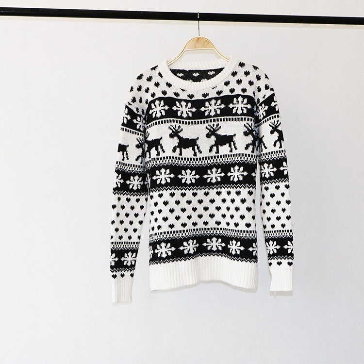 Autumn Winter Fast Sell Sweater Women Christmas Red Round Neck Deer Snowflake Pullover Sweater