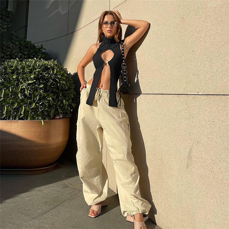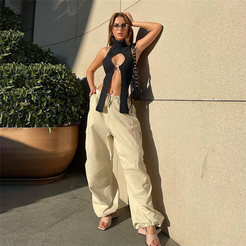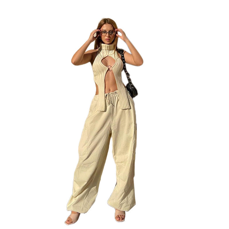 Autumn Women's New Knitted Hollow Sleeveless Solid Color Slim Casual Jacket