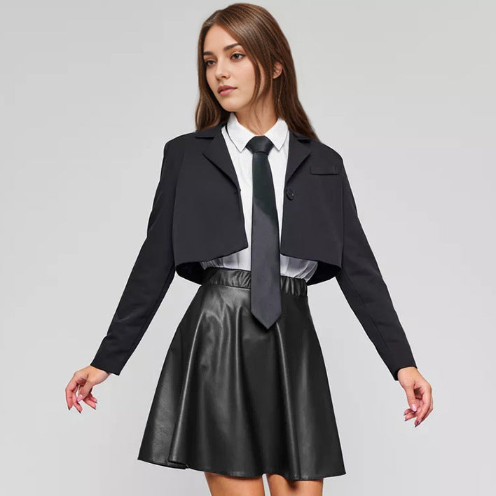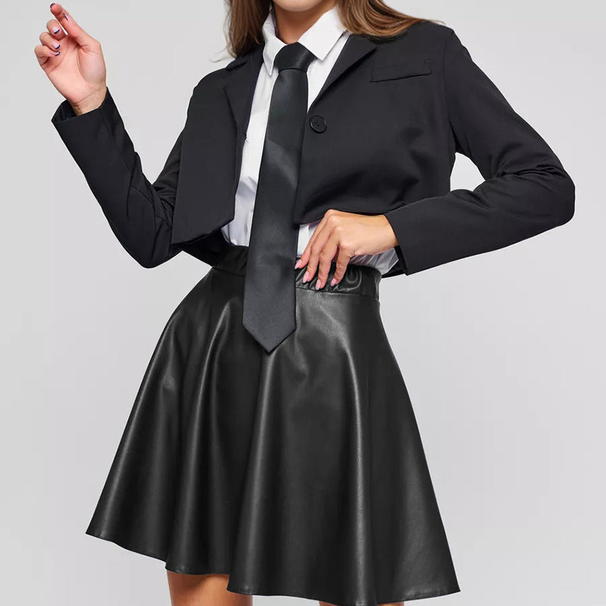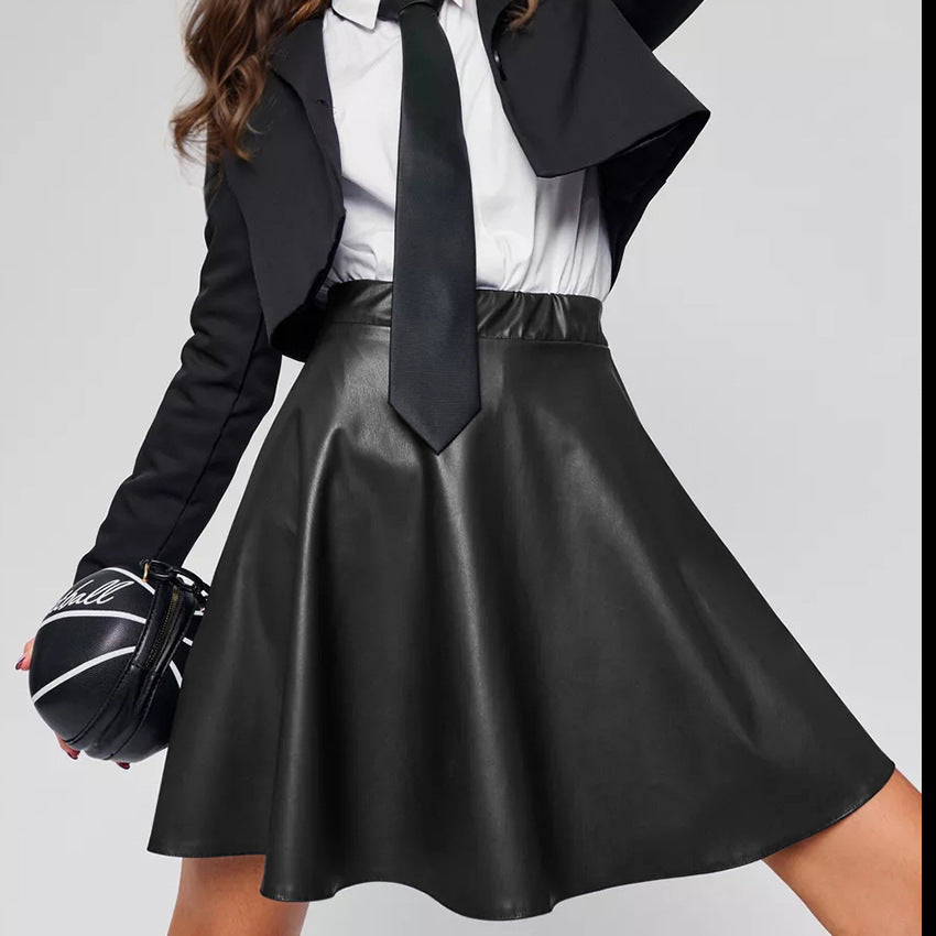 Black Temperament High-Waisted Commuter Leather Skirt Wildberries Hot Spring And Summer Fashion Women's Short Skirts