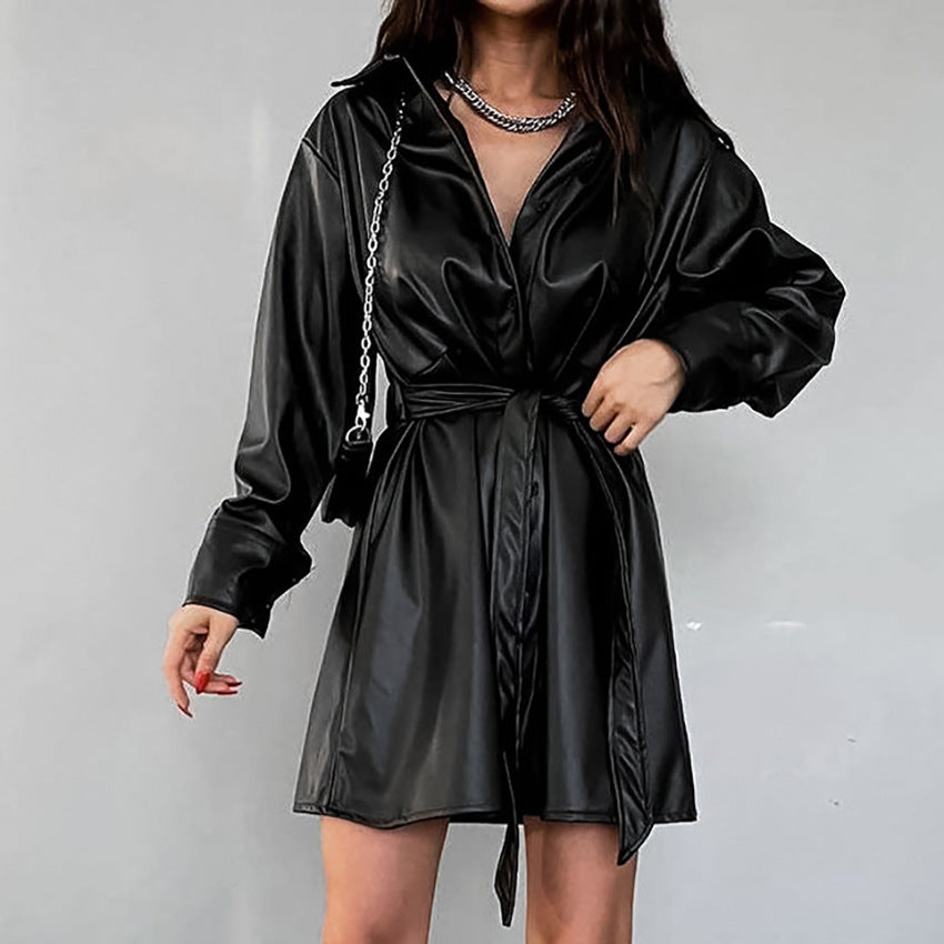 Black Velvet Faux Leather Lapel Elastic Temperament Dress New Fall Fashion Women