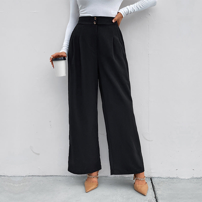 Casual High-Waisted Commuter Style Casual Pants Spring And Autumn New Loose Black Wide-Leg Pants