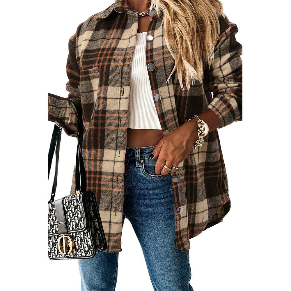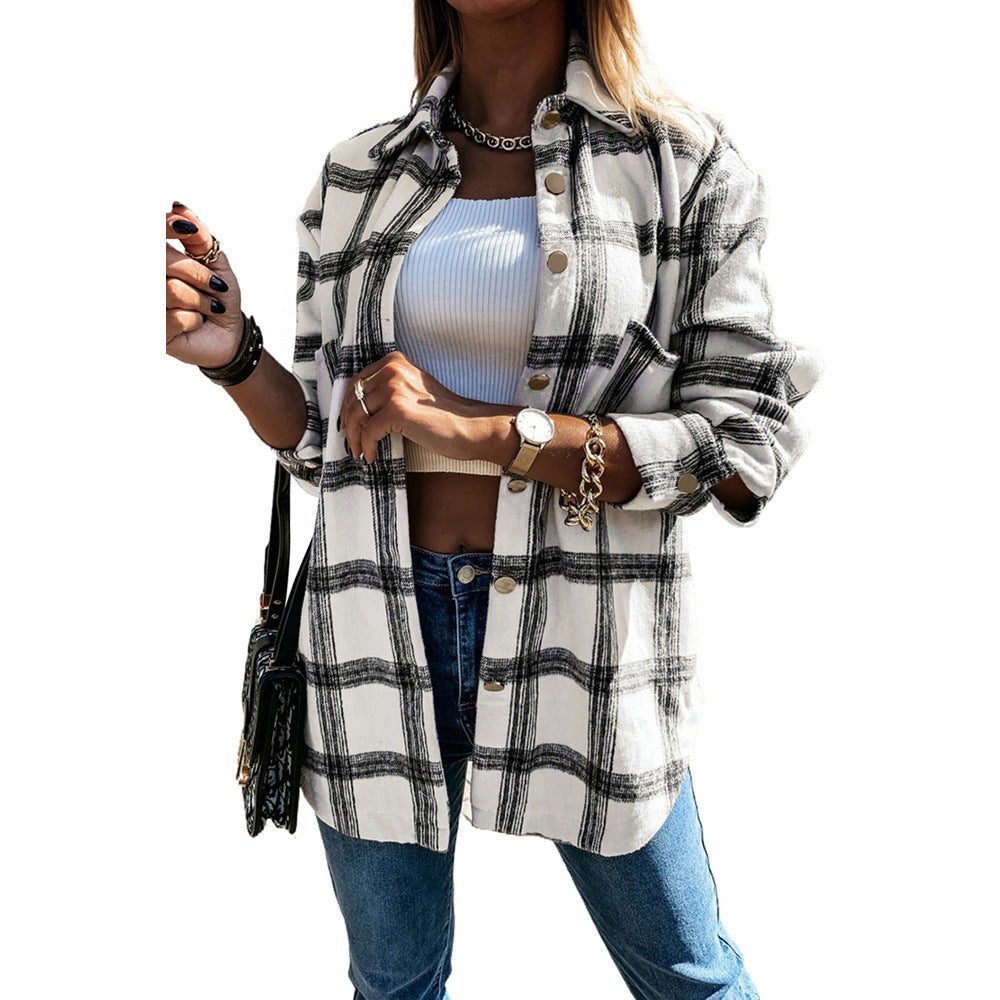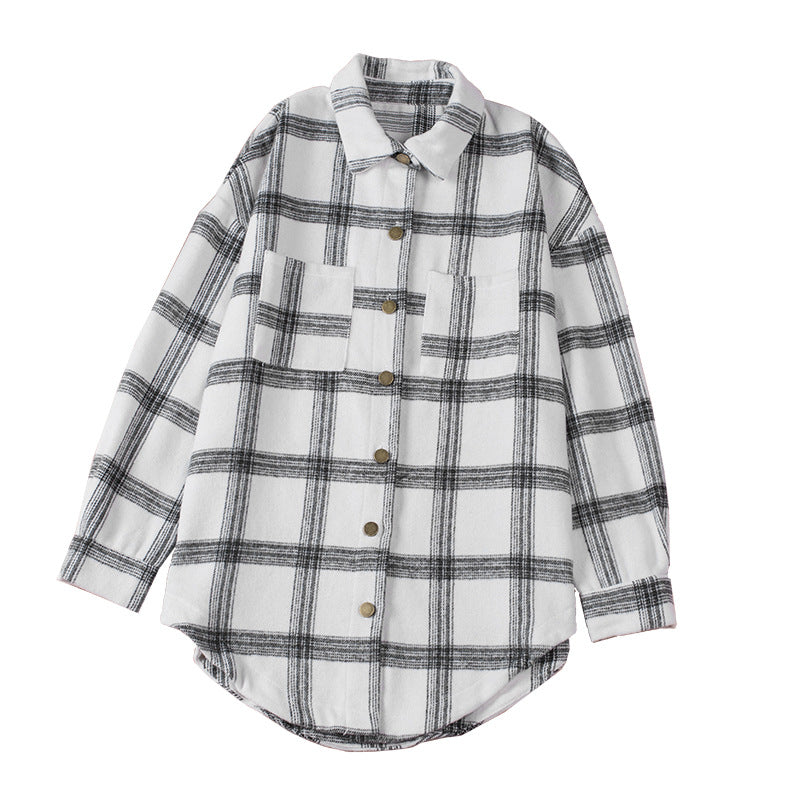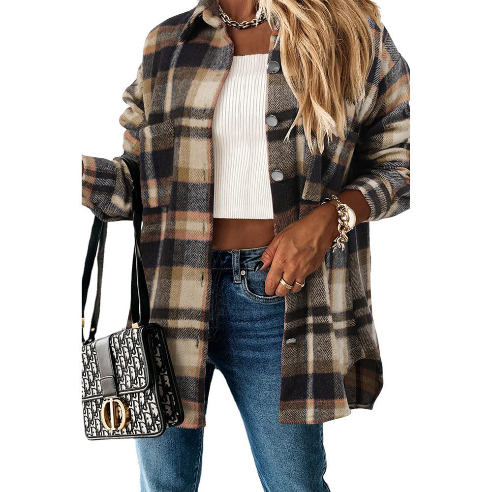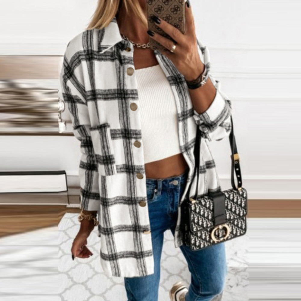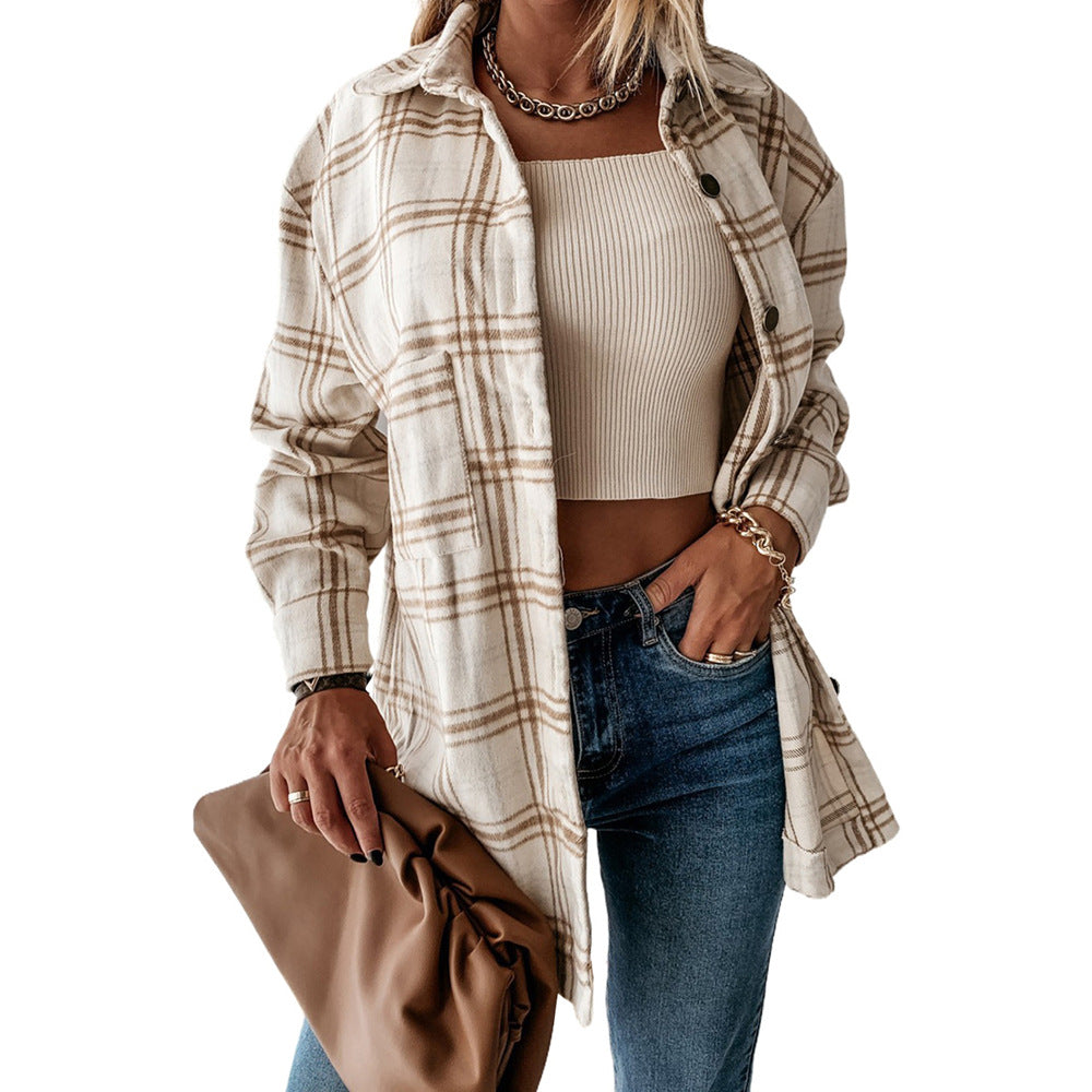 Casual Mid-Length Plaid Jacket Women's Loose Cardigan Lapel Shirt