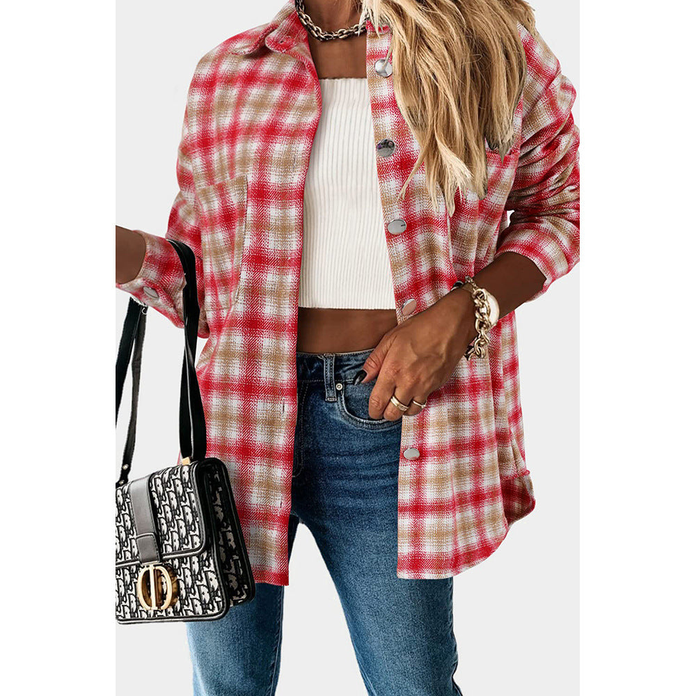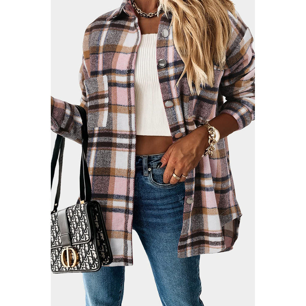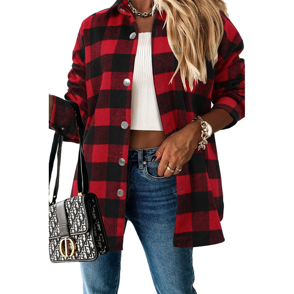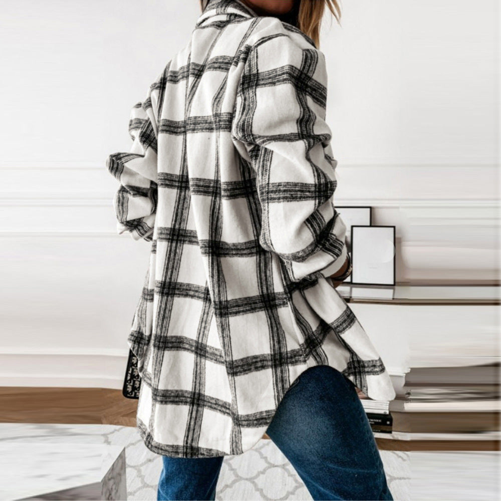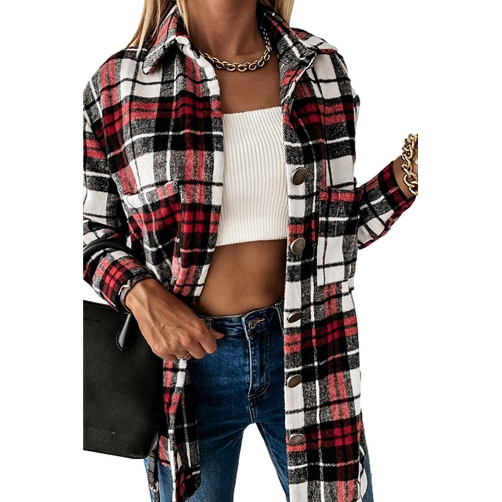 Casual Mid-Length Plaid Jacket Women's Loose Cardigan Lapel Shirt