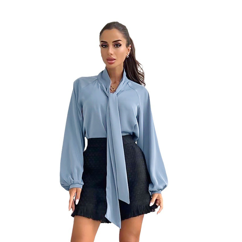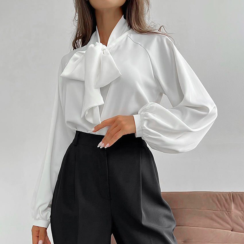 Casual Simple Shirt Sleeve Long Sleeve Bow Tie Shirt