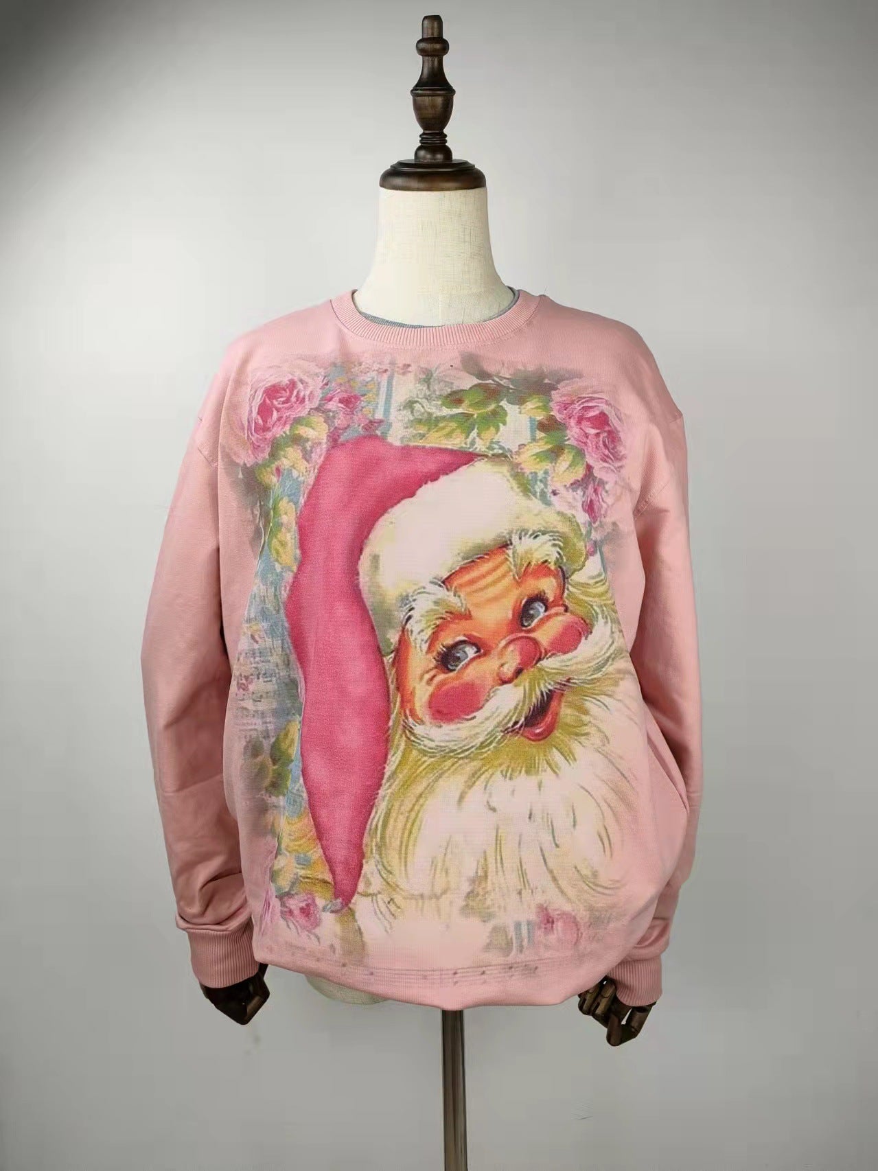 Christmas Style Boston Series Casual Young Round Neck Pullover Combed Cotton Printed Hoodie Women's Wear
