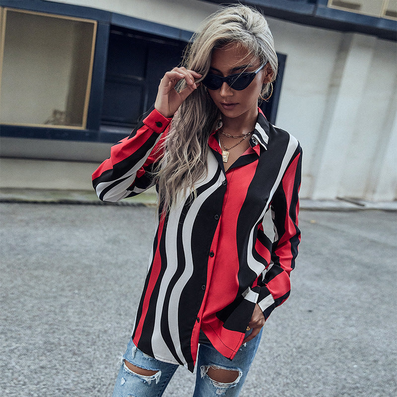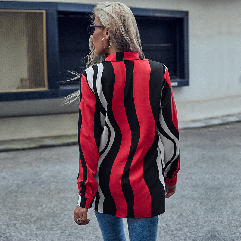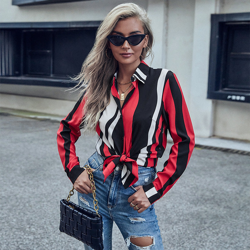 Early Autumn Fashion Women's Long-Sleeved Lapel Striped Shirt