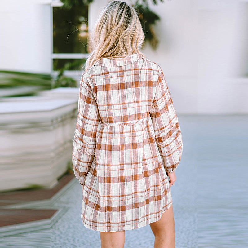 Early Autumn New Plaid High-Waisted Long-Sleeved Dress Women Fashion Loose Knee-Length Skirt Women