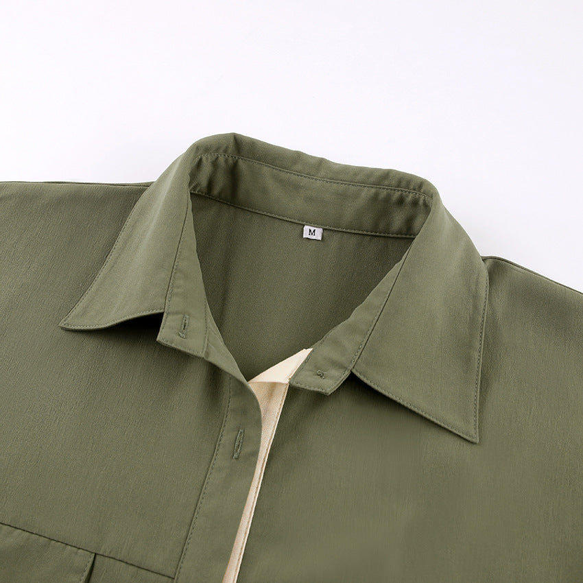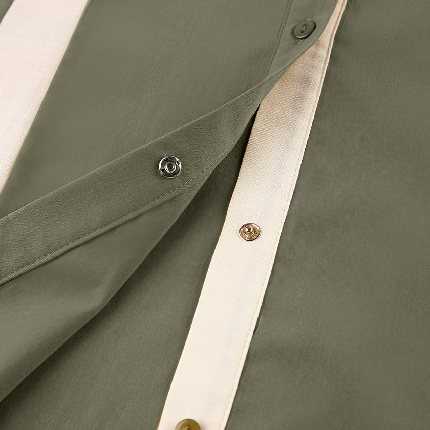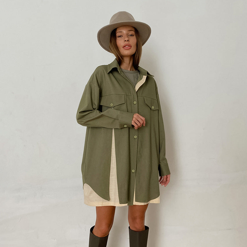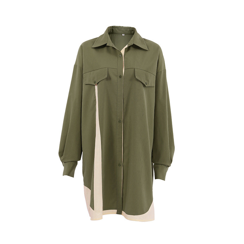 Fashion Long Sleeve Shirt Patchwork Color Contrast Niche Women's Retro Design Sense Shirt Dress Women's Wear