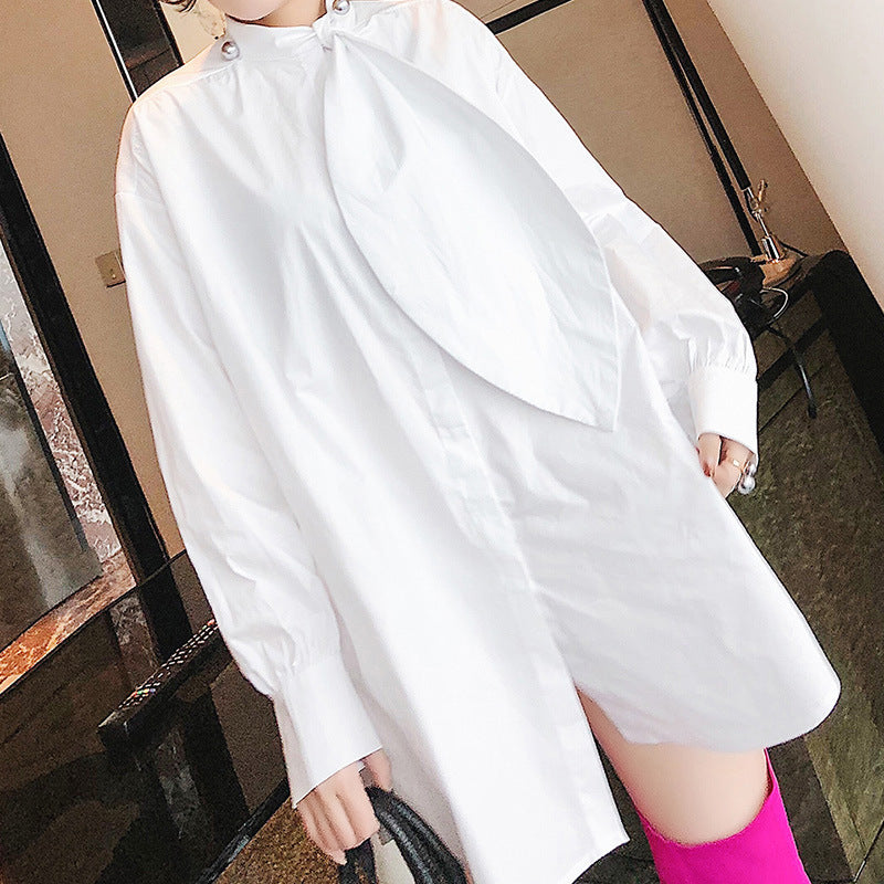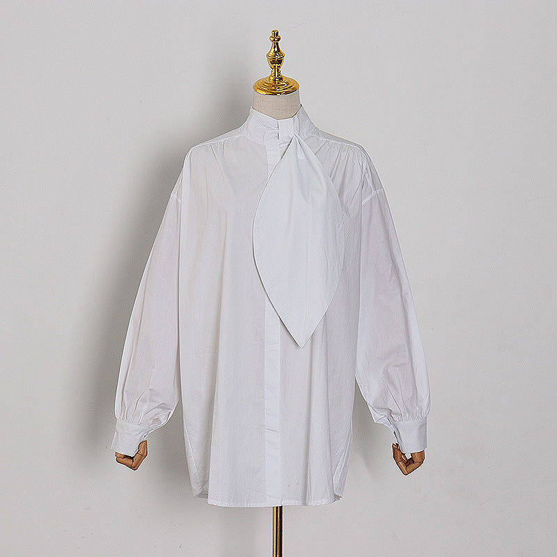 Fashion Style Personality Bow Tie Shirt Women's Spring Women's Loose Stand Collar Long Shirt Top