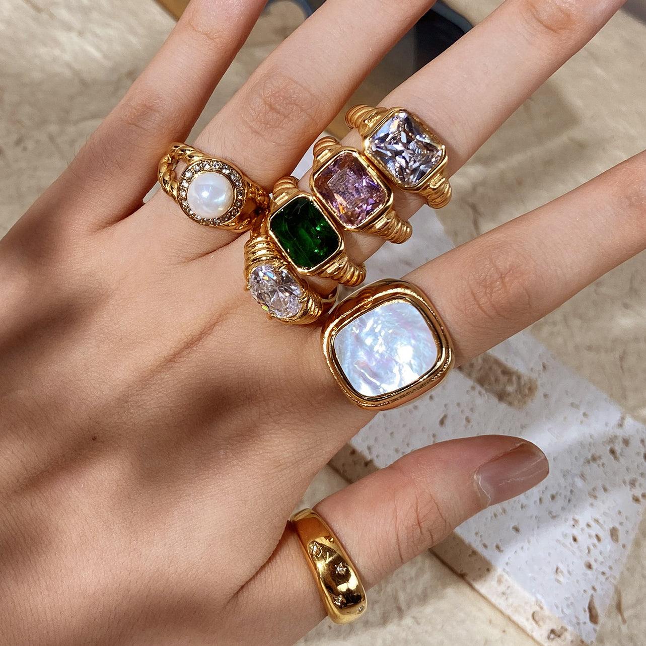 5 pcs Fashion Zircon Ring 18K Gold Plated Stainless Steel Ring Jewelry for Women