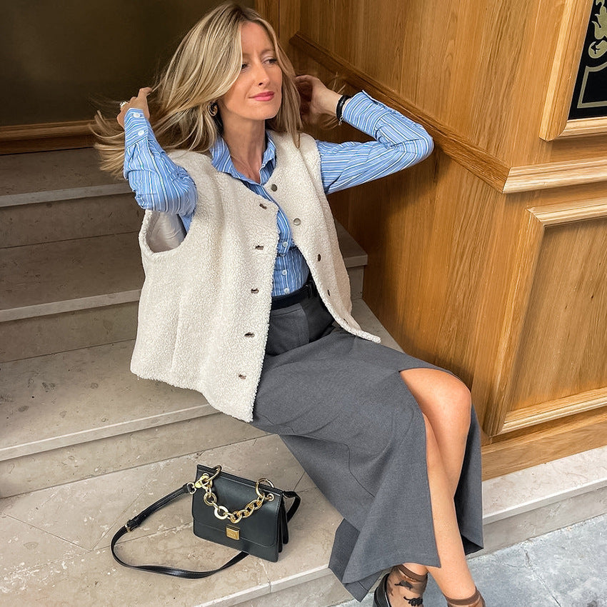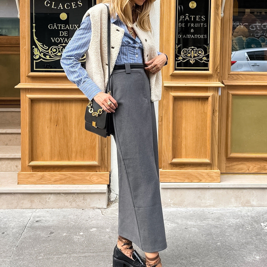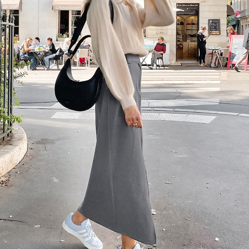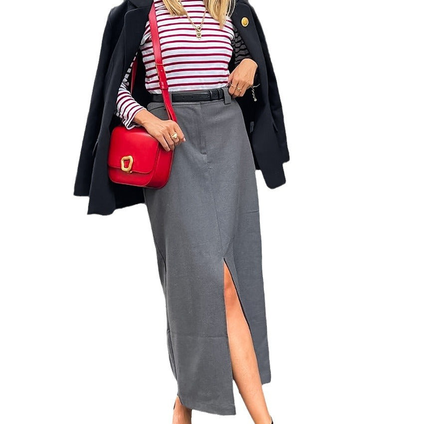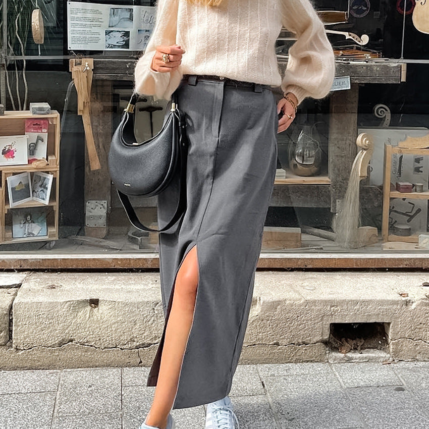 Grey Commuter Straight Tube Split Skirt New Fall Fashion Women's Long Skirt