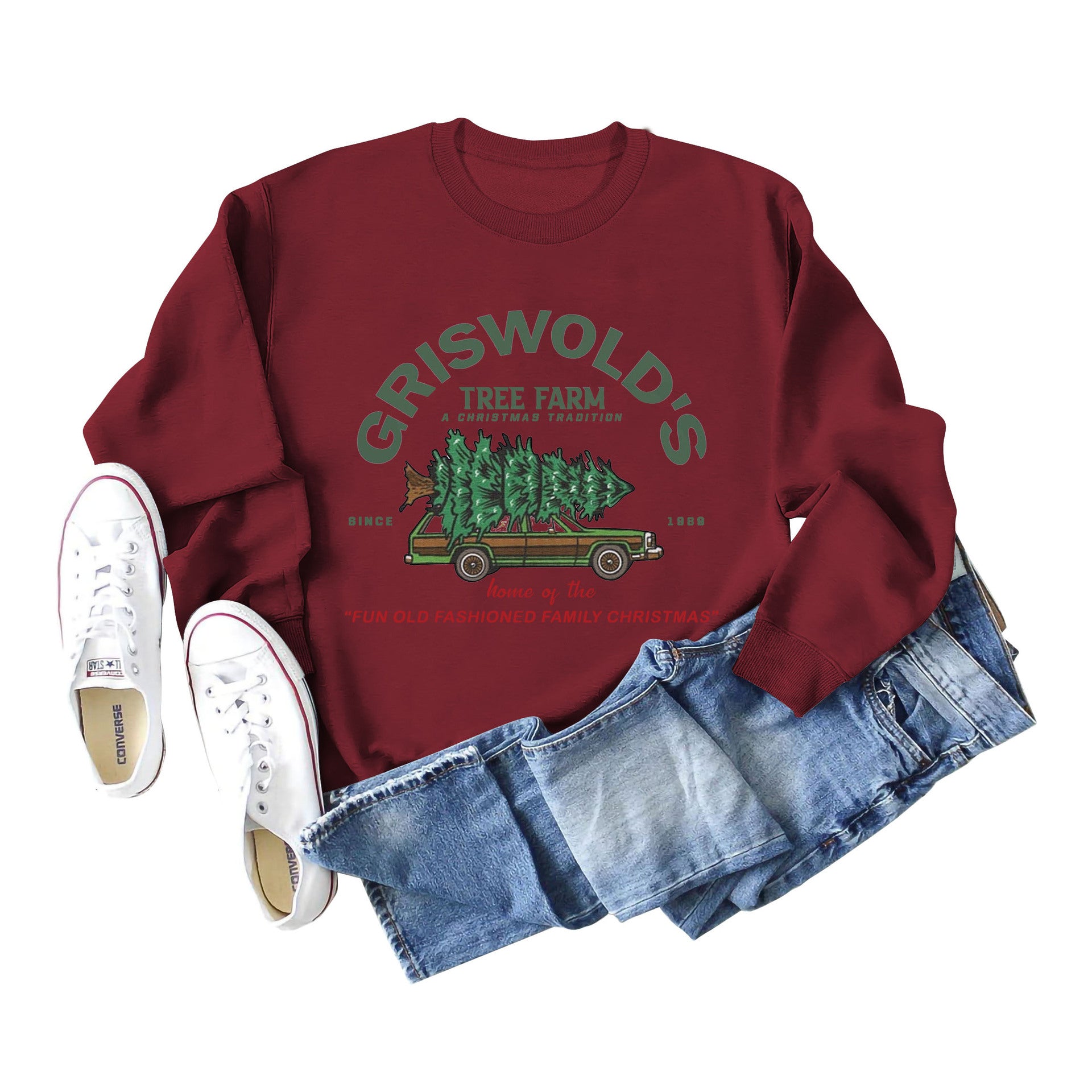 Griswold's Christmas Tree Letter Round Neck Long Sleeve Christmas Plus Size Women's Hoodie