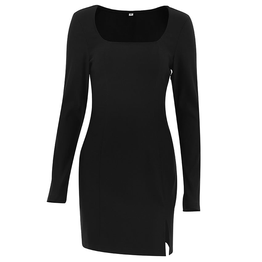 Black Dress Niche Square Collar Slit Sheath Skirt Women's New Spring Dress