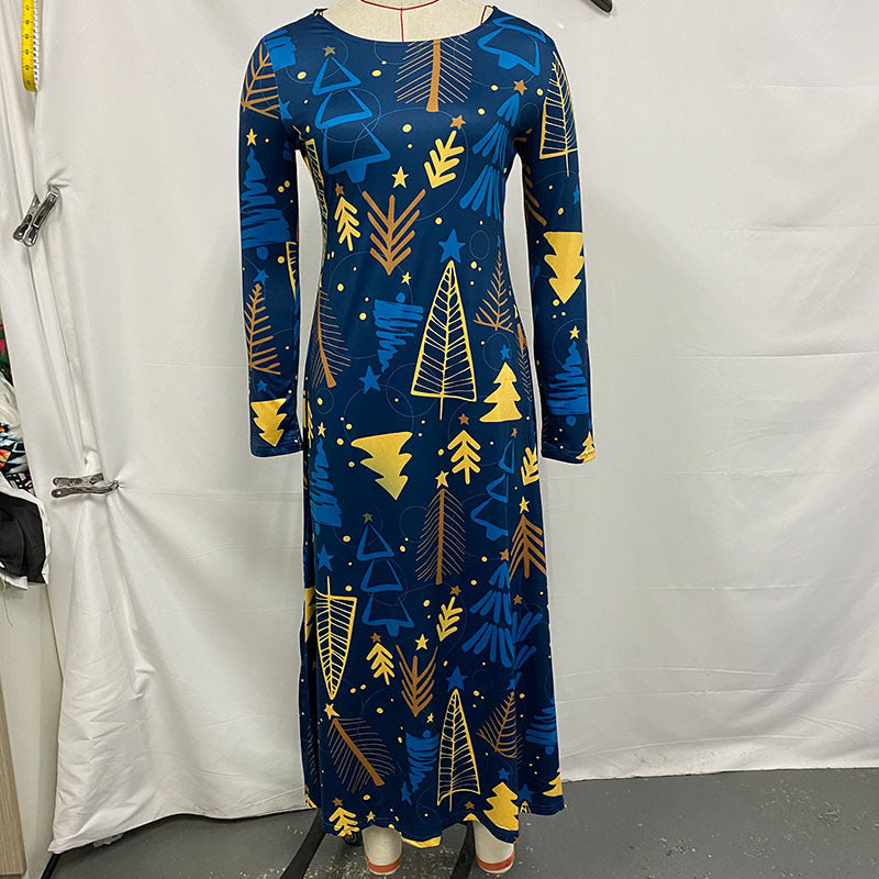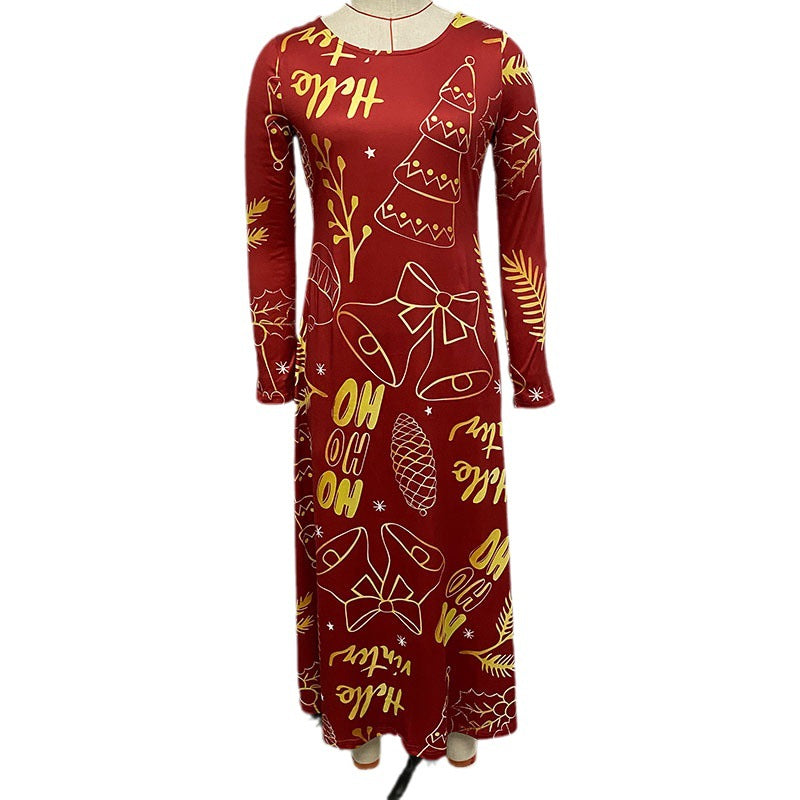 Hot Autumn Winter Long-Sleeved Christmas Casual Women's Dress Print Elegant Temperament