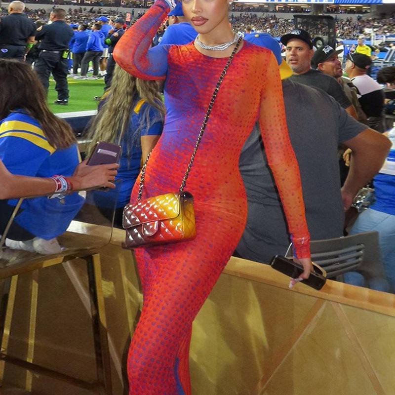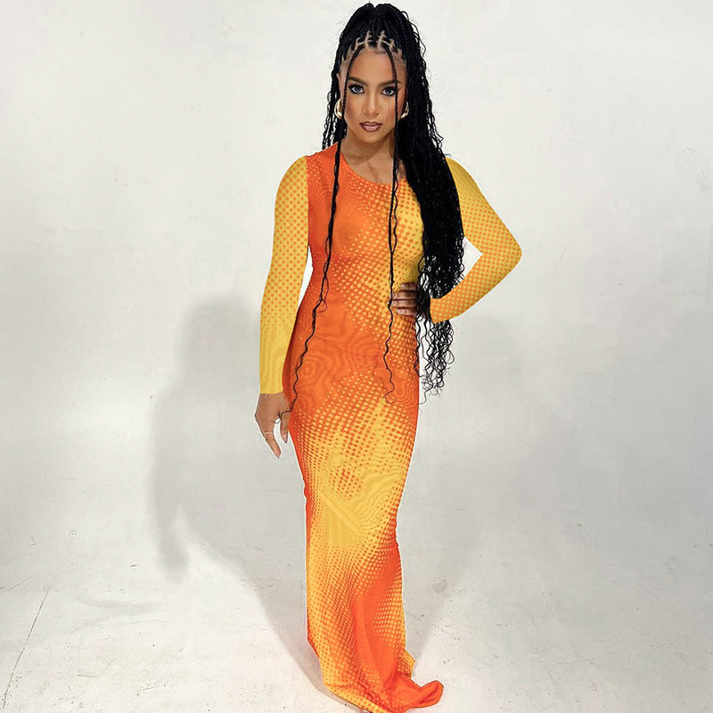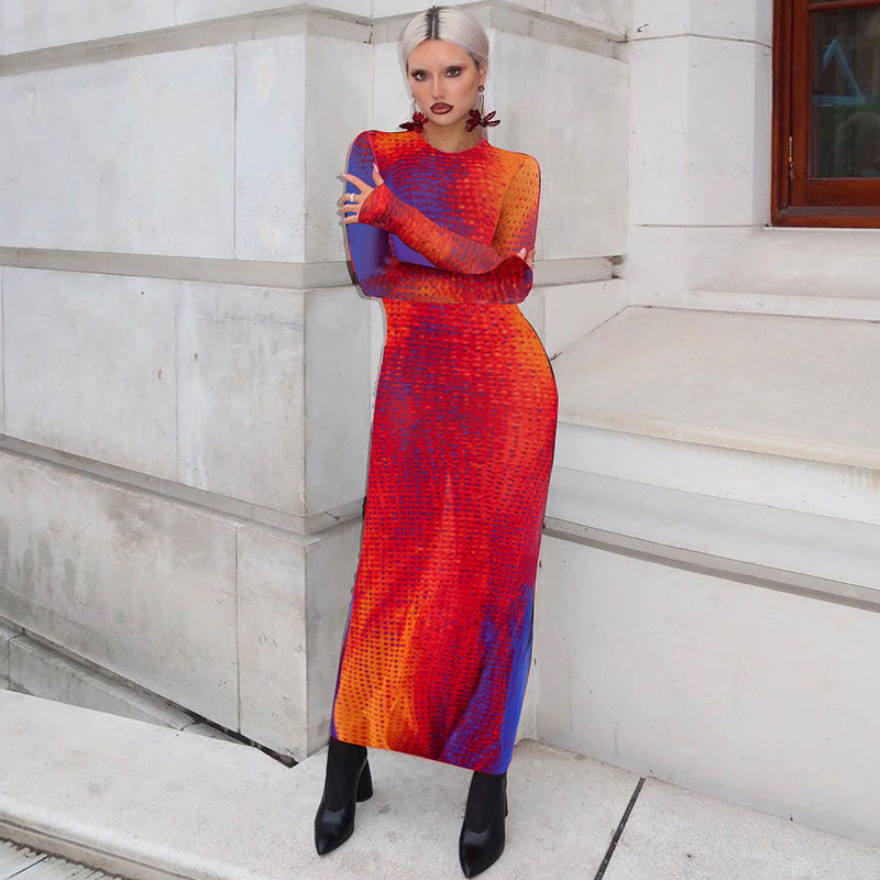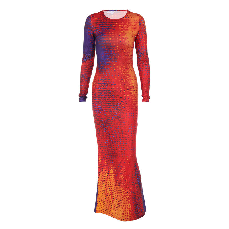 Kardashian With The Same Dress Round Neck Long Sleeve Bag Hip High Waist Sheath Skirt Fall And Winter Bottom With A Female Dress