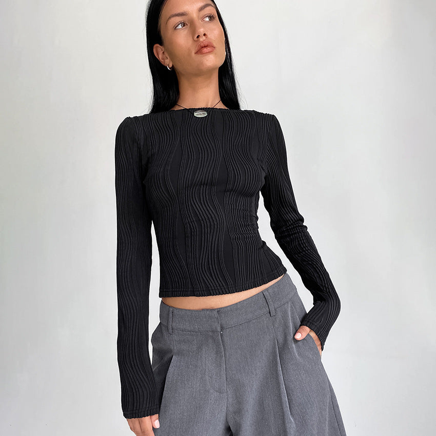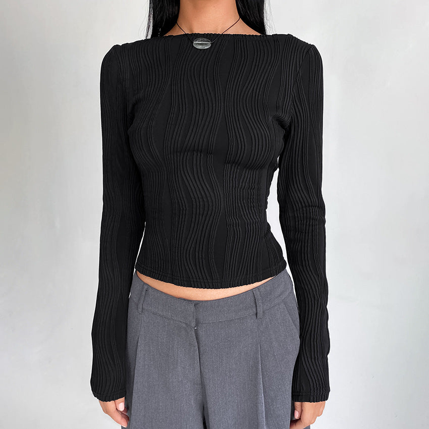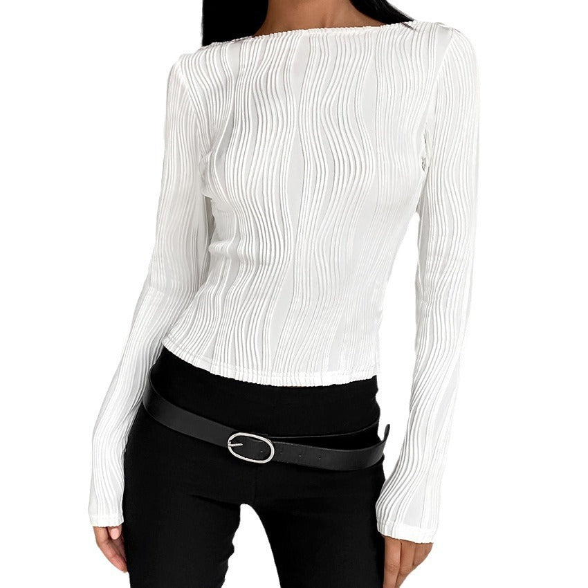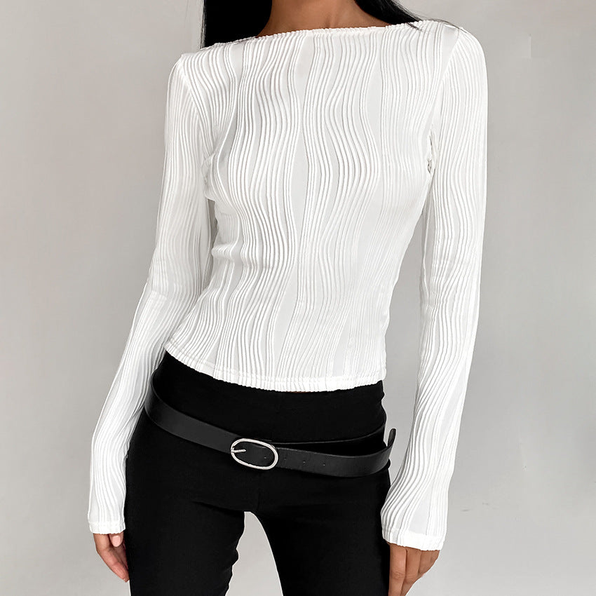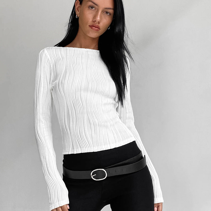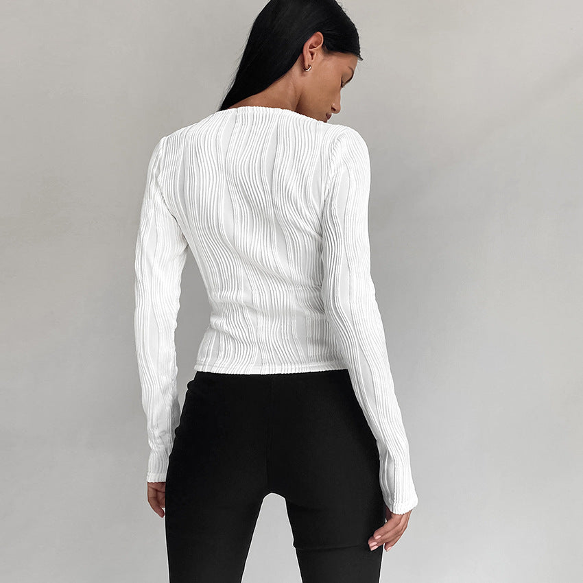 Knit Pleated Long-Sleeved T-Shirt Autumn And Winter New Slim-Fit With Women's Top Fashion Commute