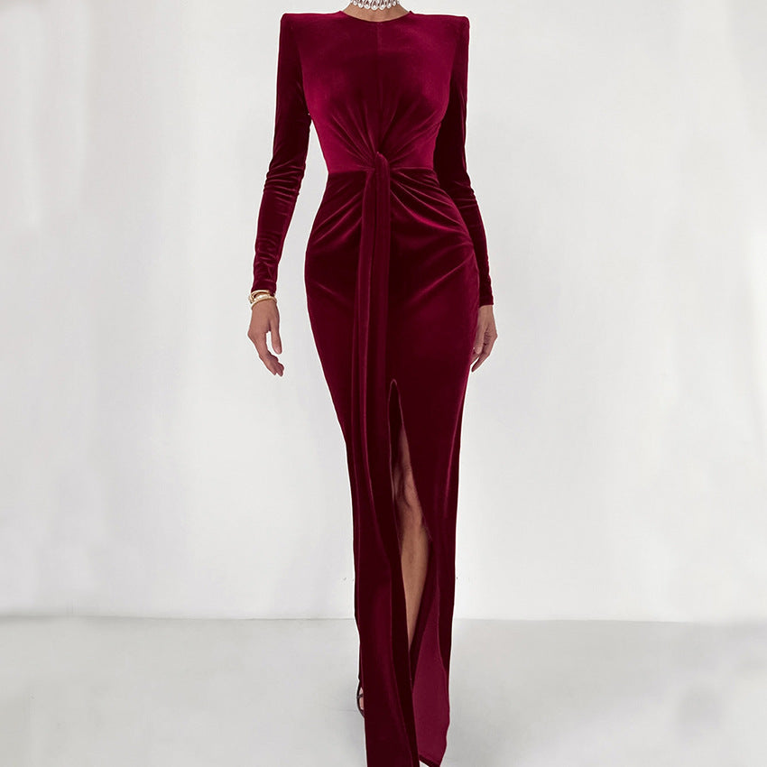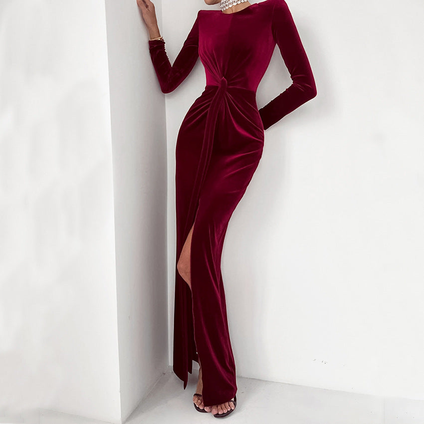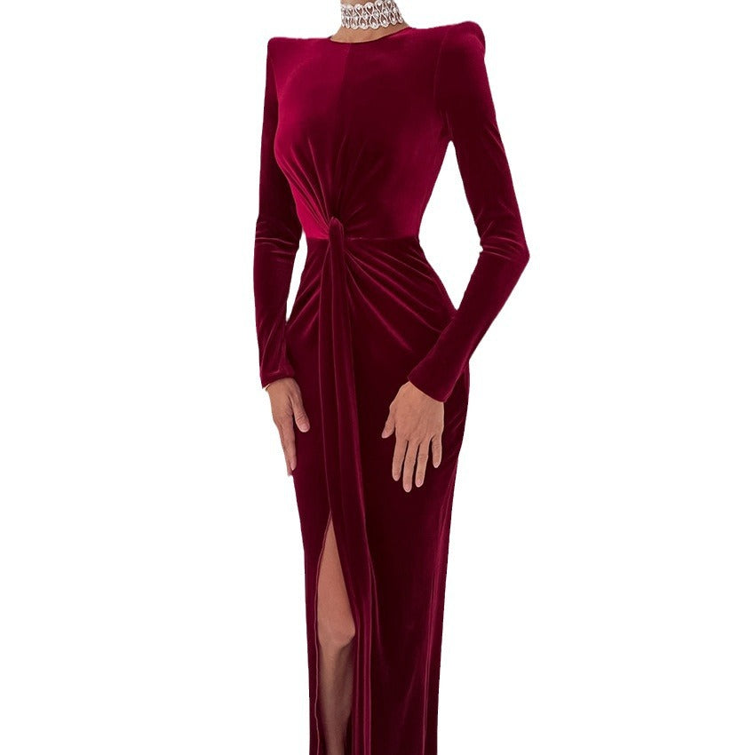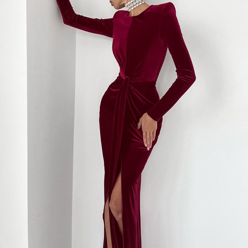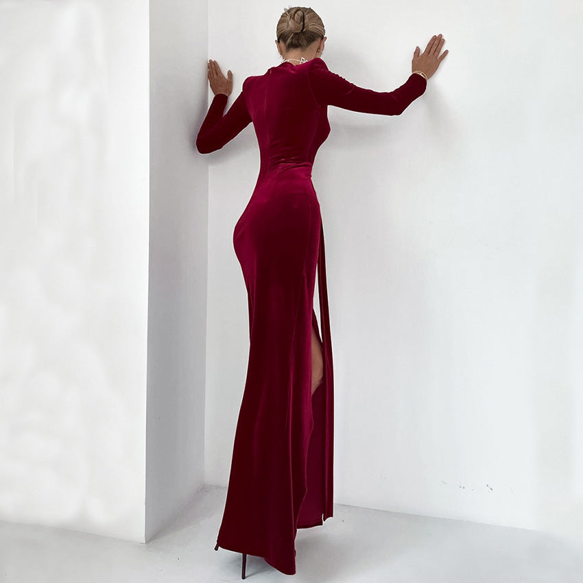 Light Luxury Velvet Sexy Slim Slit Dress New Spring Fashion Commuter Woman