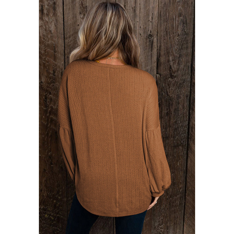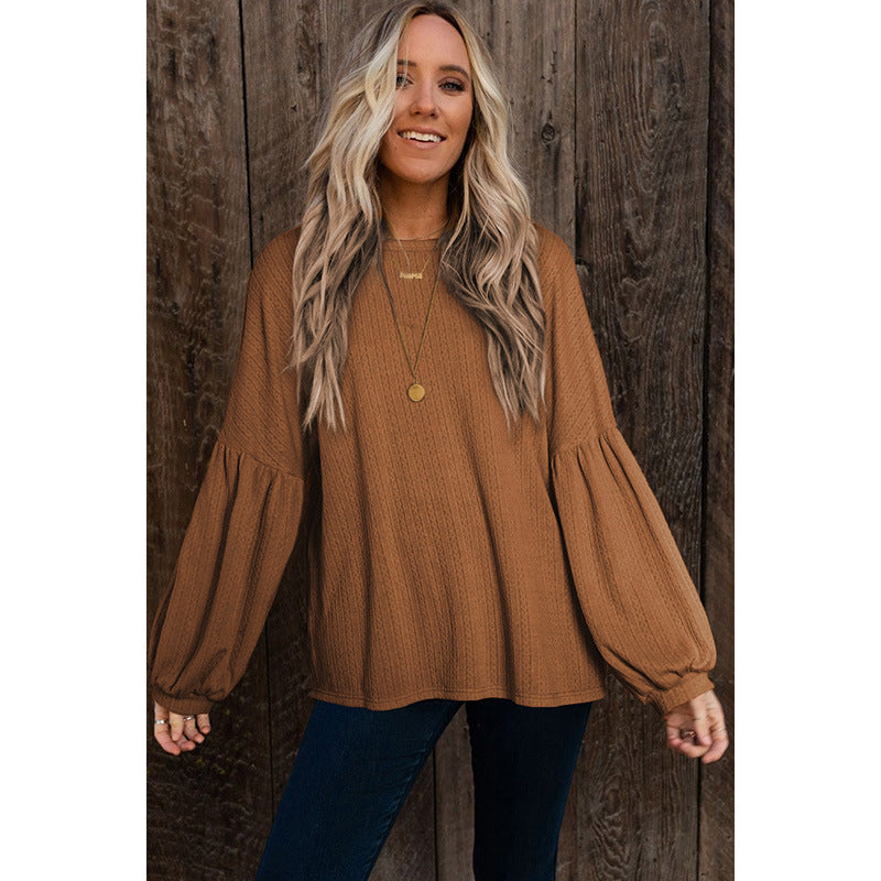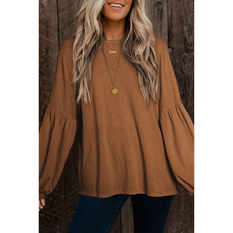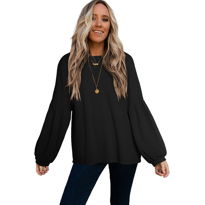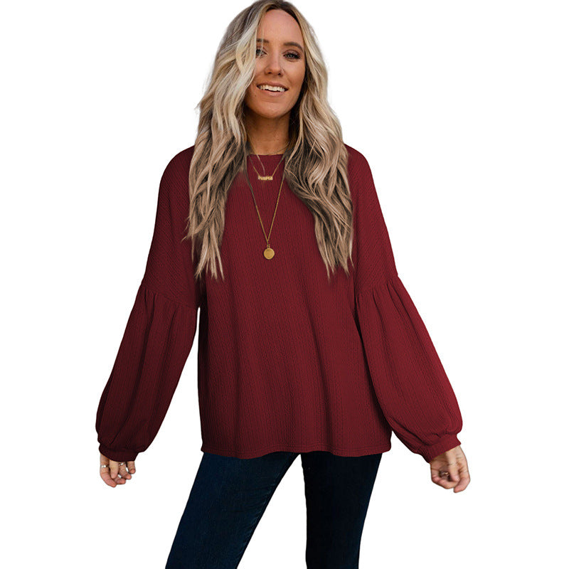 Loose Casual Jacquard Solid Color Sweater Women Early Autumn New Pullover Round Neck Puffy Sleeve Blouse Woman