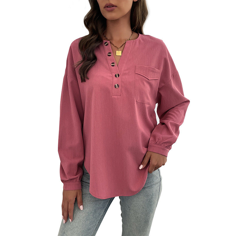 New Autumn And Winter New Women's Long Sleeve Solid Color Shirt Casual Women