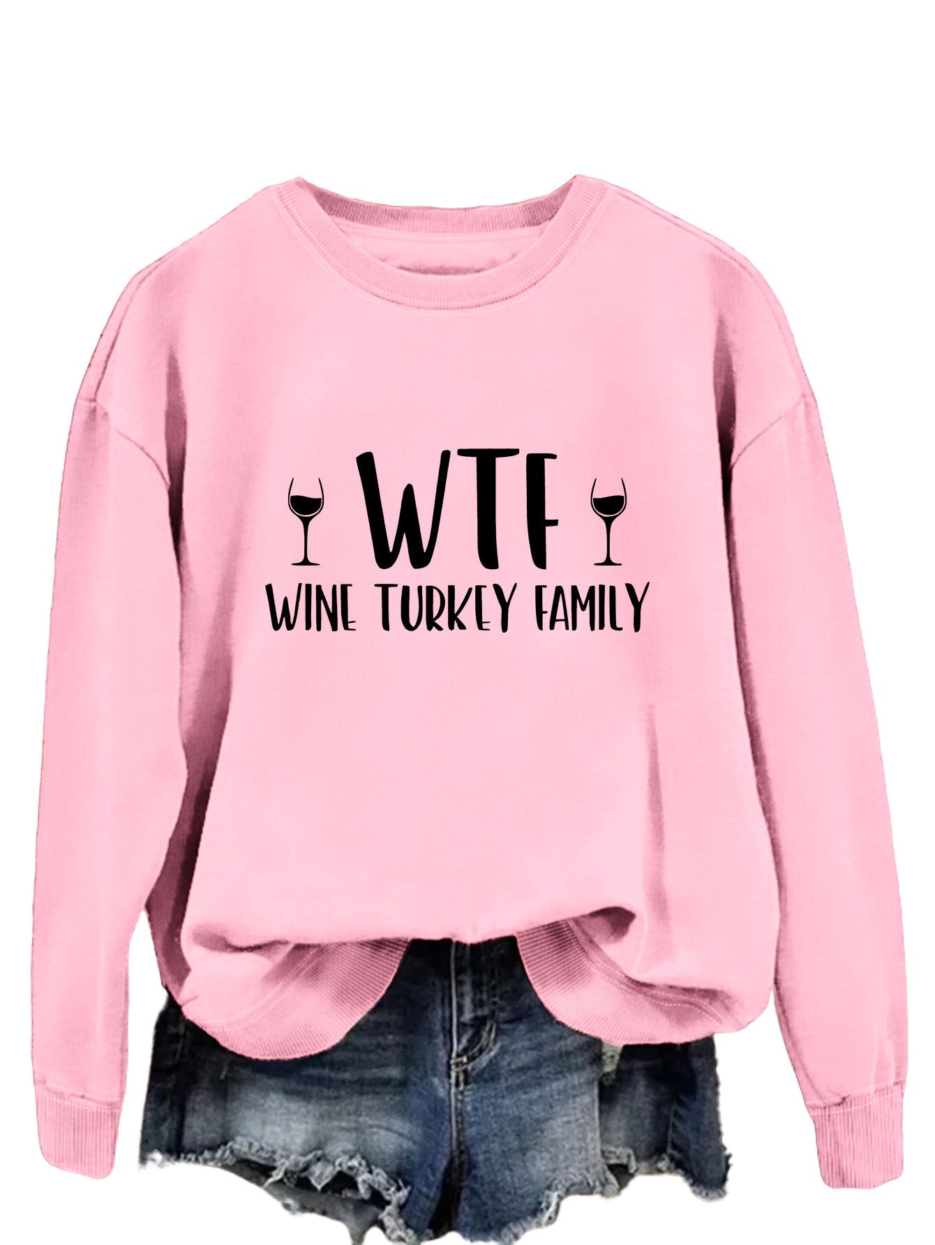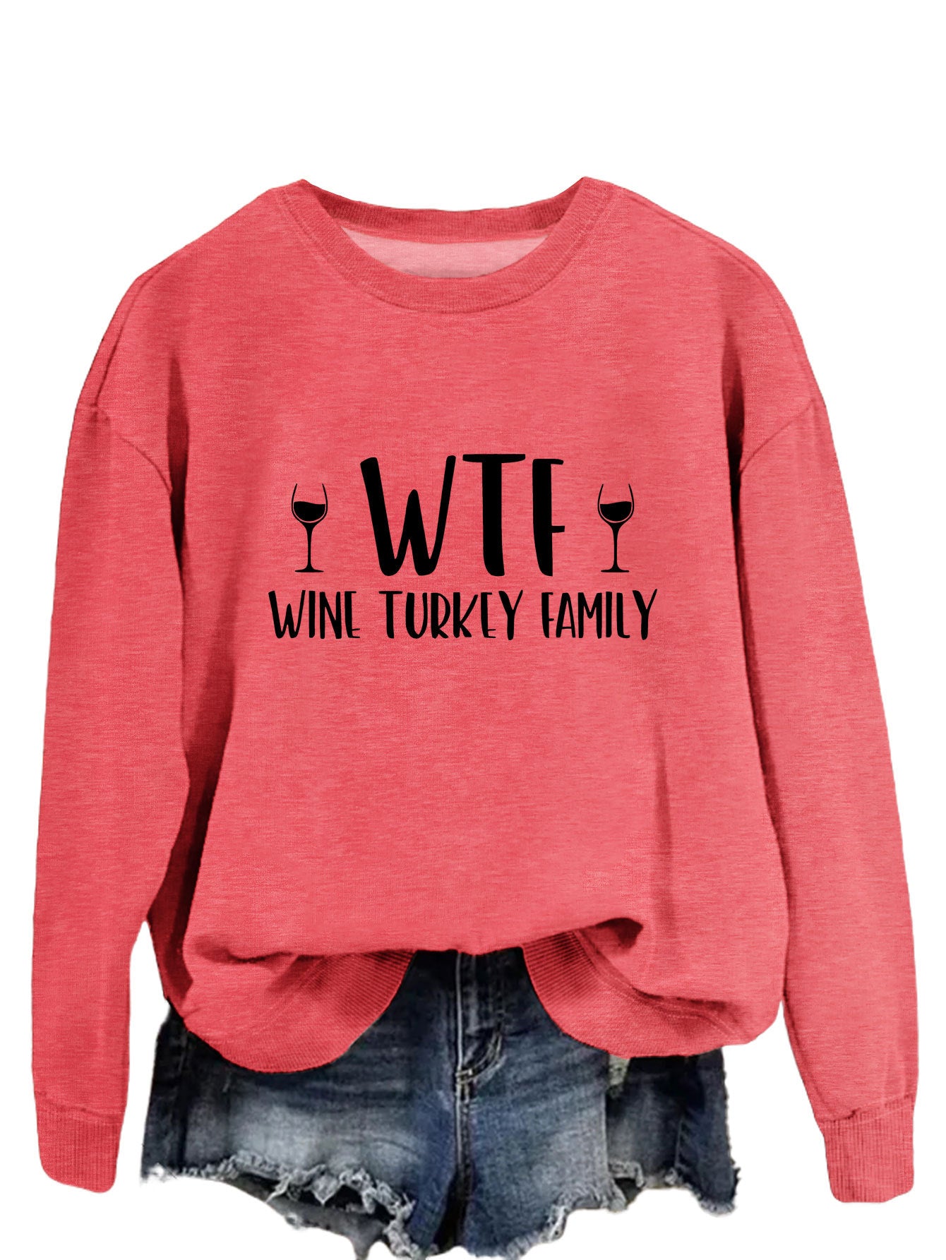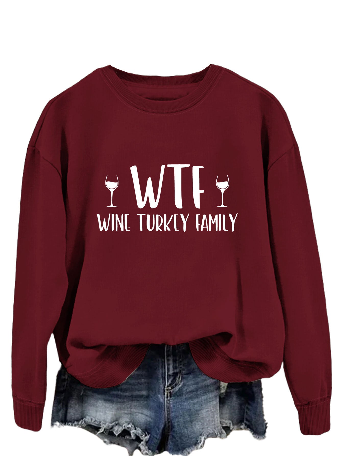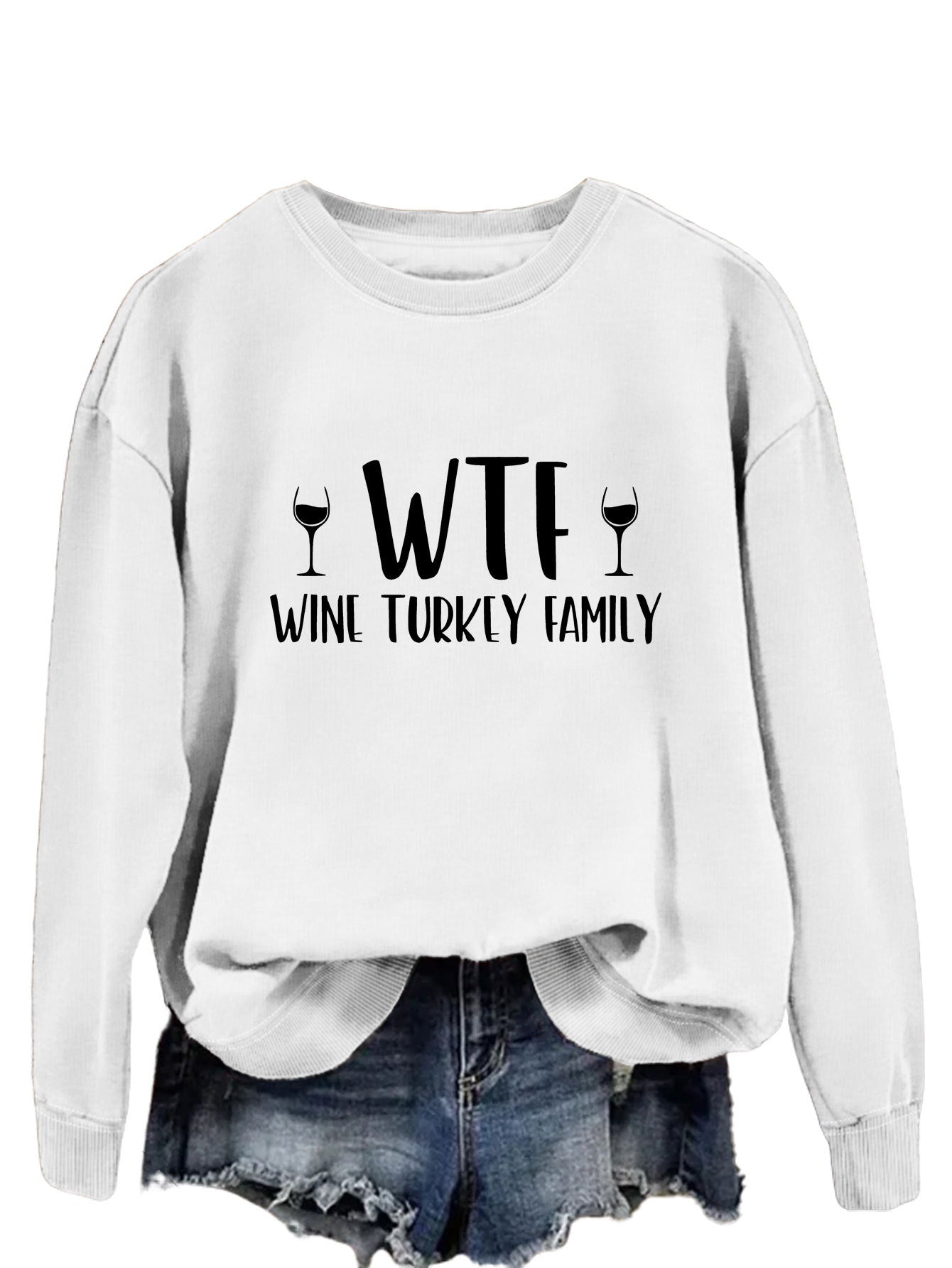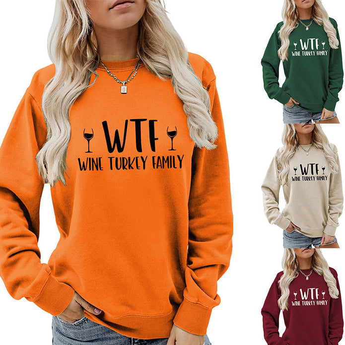 New Autumn And Winter Wtf Wine Turkey Family Hoodie Fashion Women's Long Sleeve Shirt