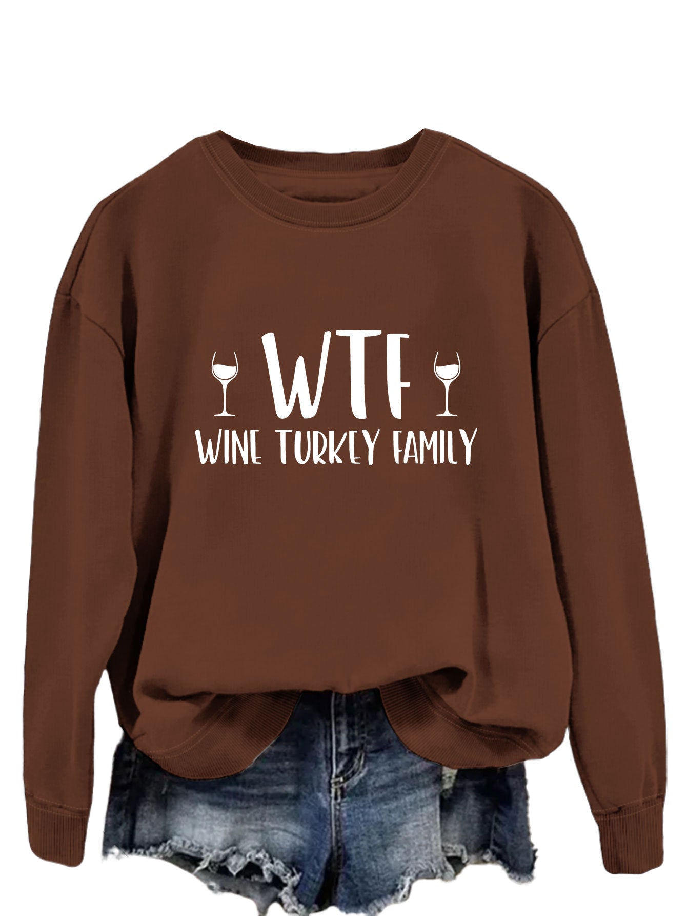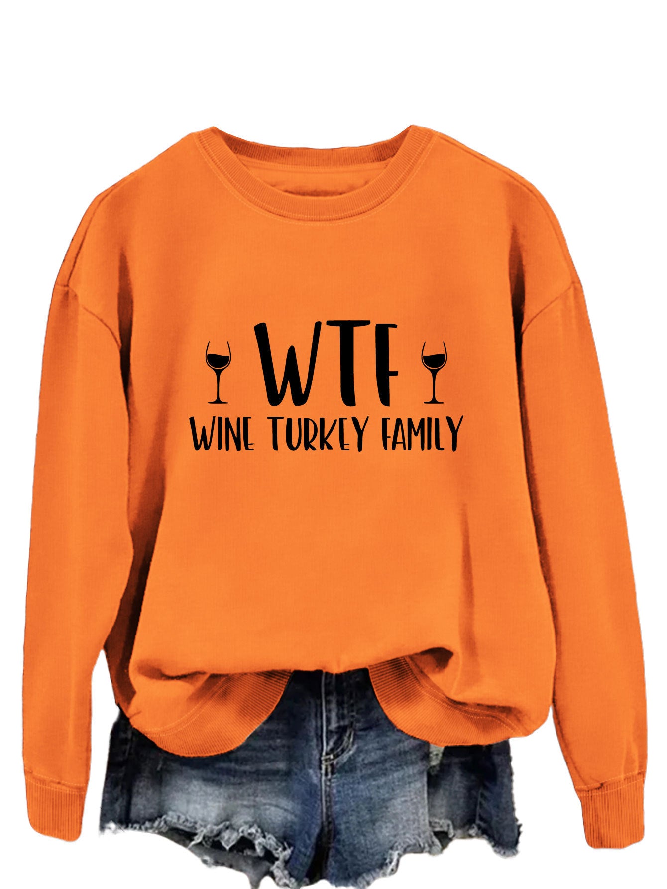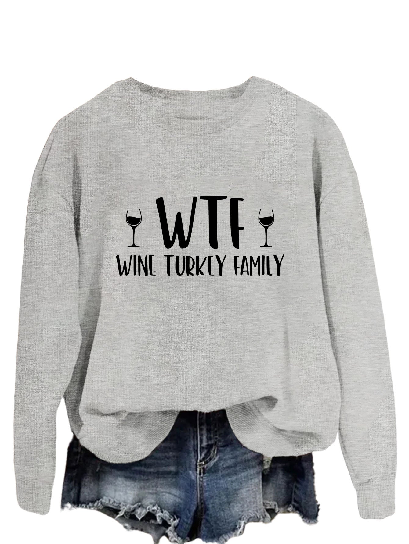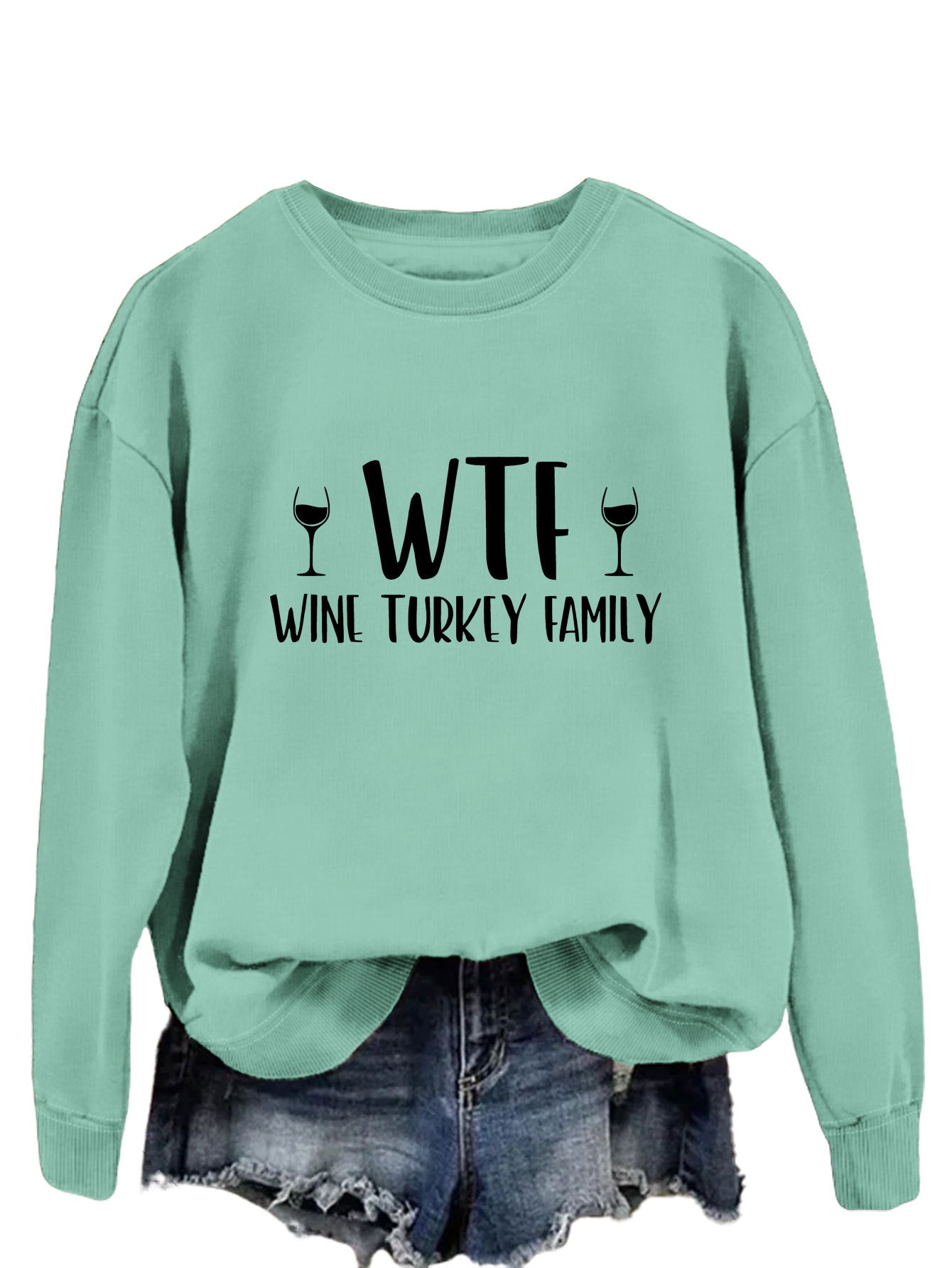 New Autumn And Winter Wtf Wine Turkey Family Hoodie Fashion Women's Long Sleeve Shirt