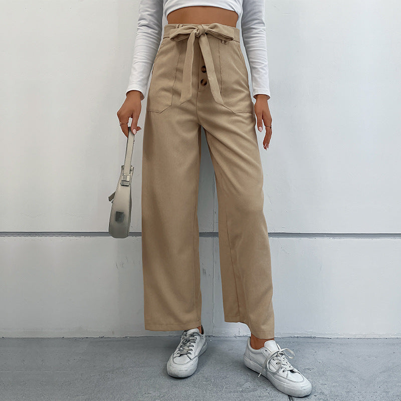 New Autumn Winter Leisure Corduroy Lace-Up Commuter Wind Wide-Leg Pants Women