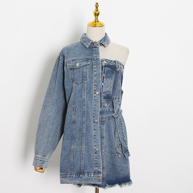 New Fashion Temperament Personality Street Style Lapel Sexy Off-The-Shoulder Asymmetrical Lace-Up Short Dress Woman