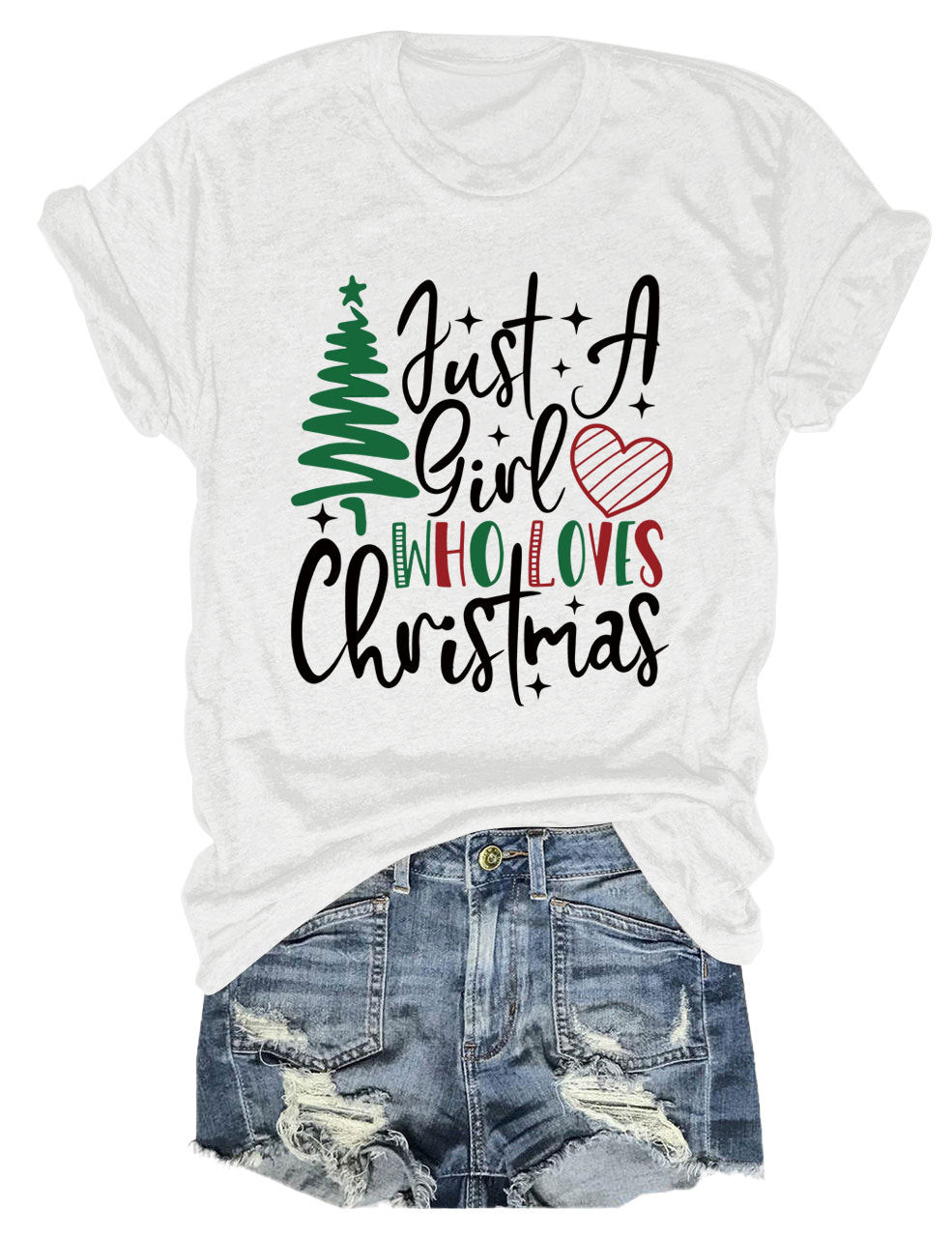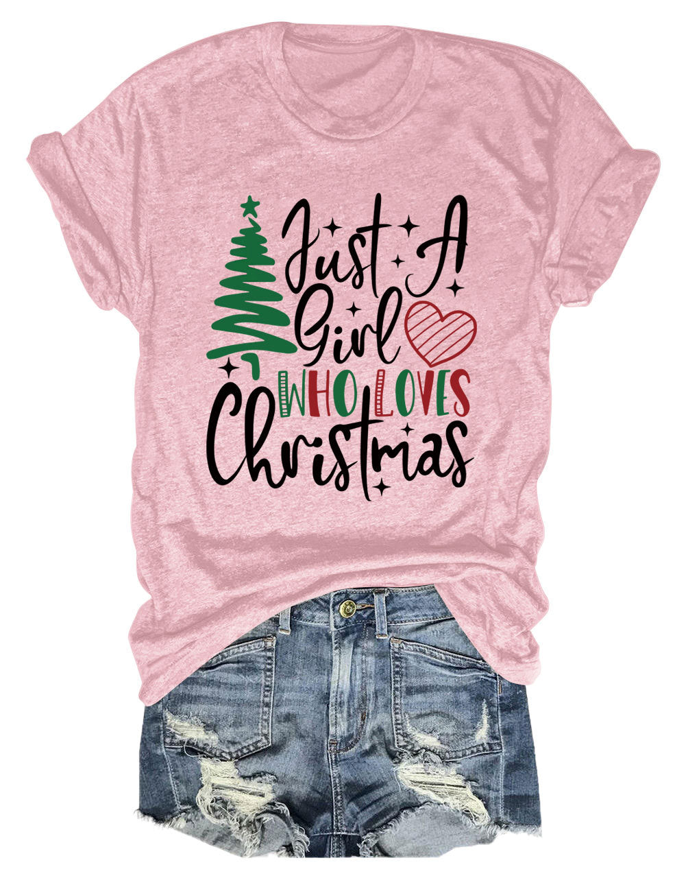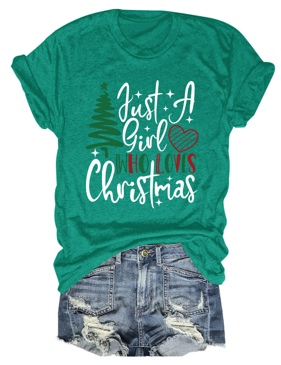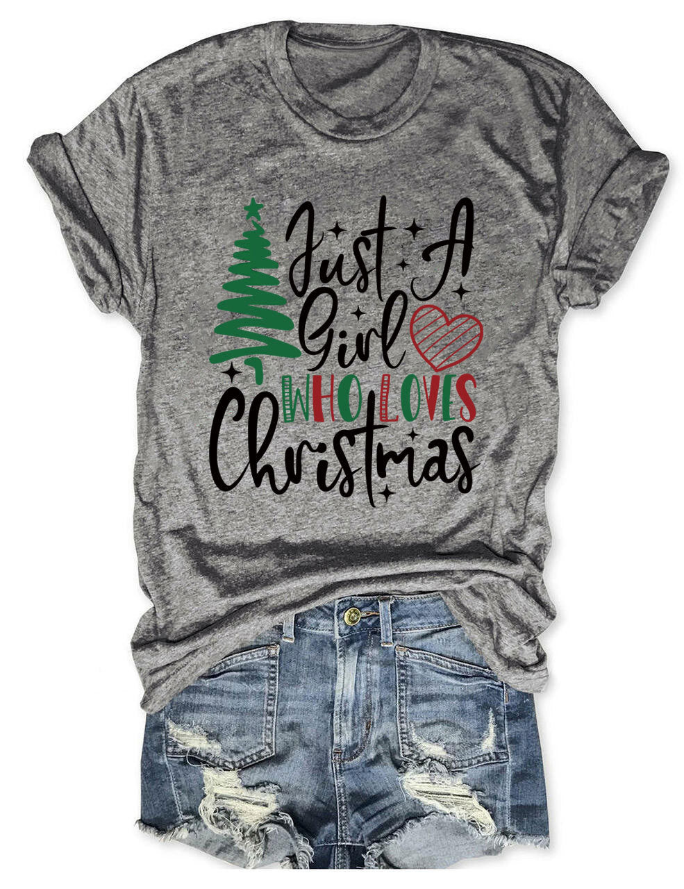 New Just A Girl Fun Christmas Tree Print Round Neck Short Sleeve Female Spot