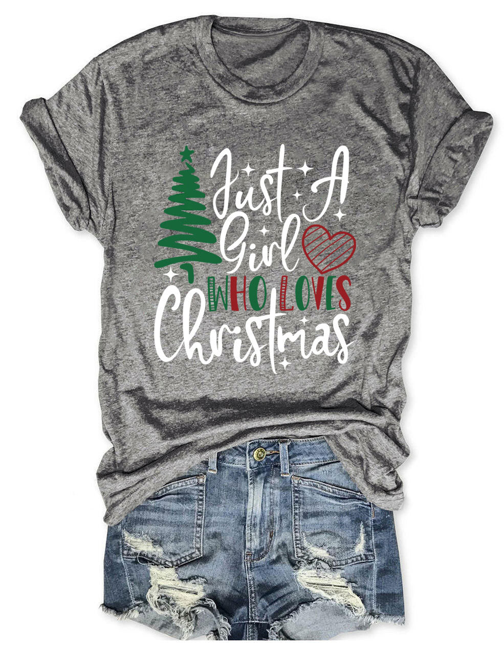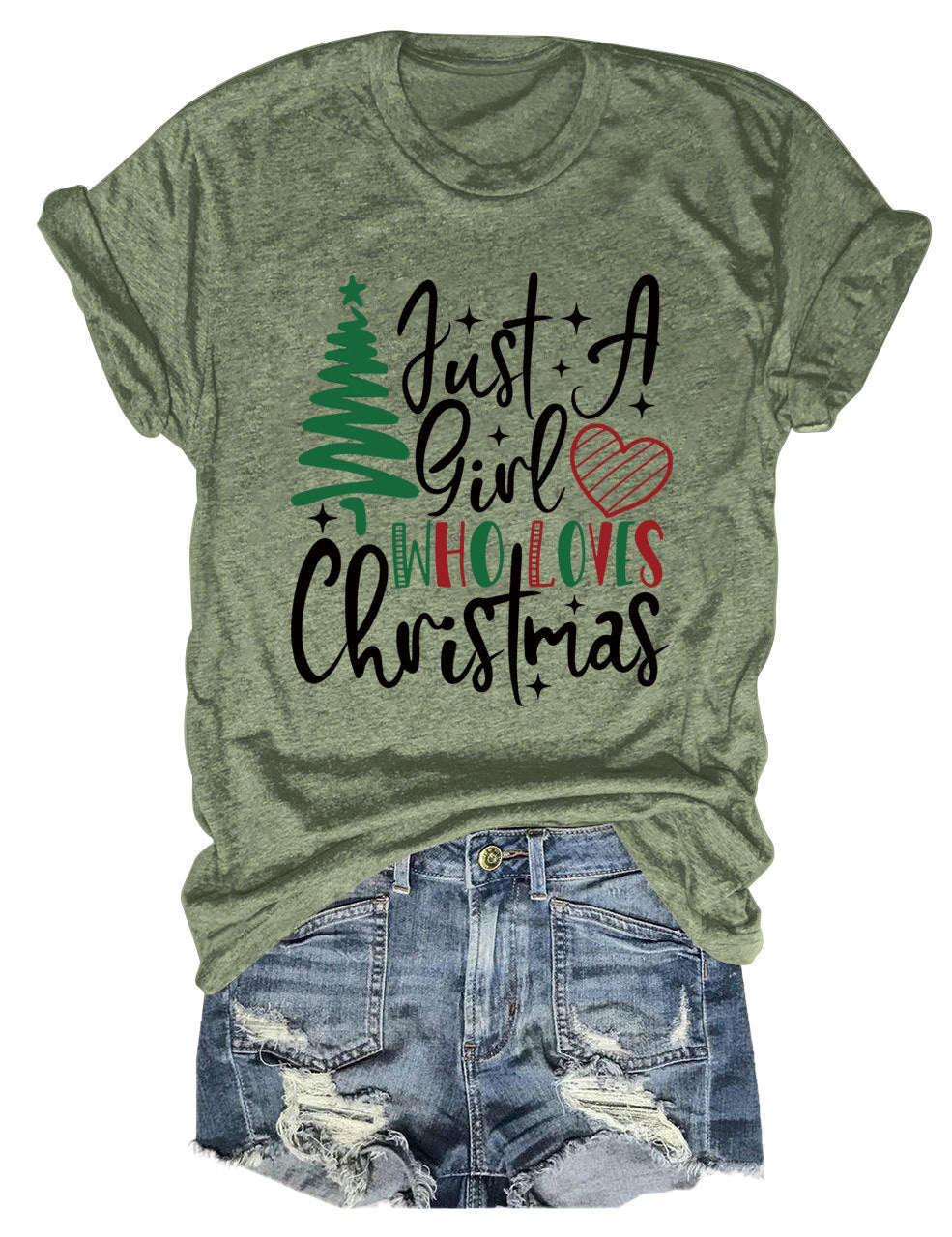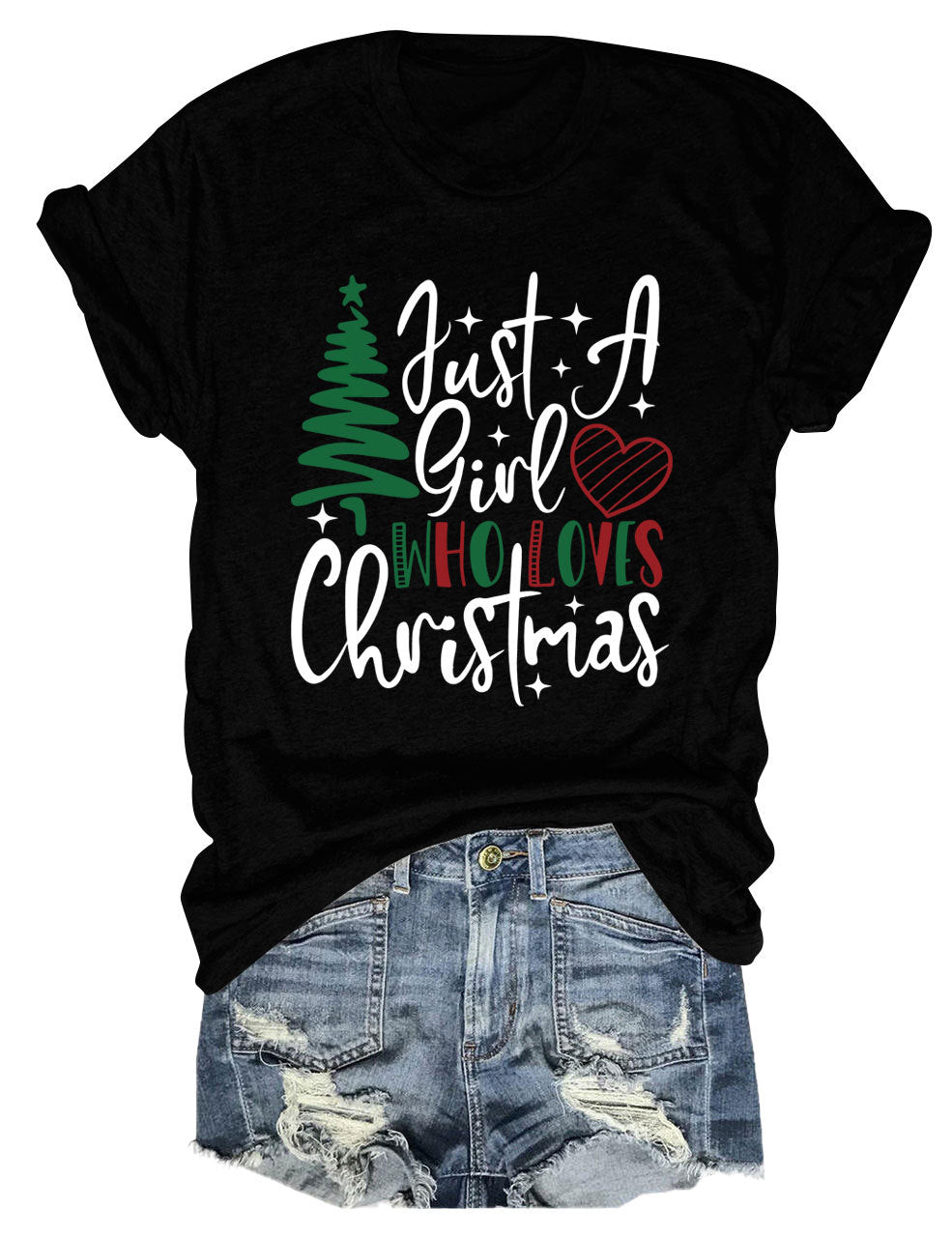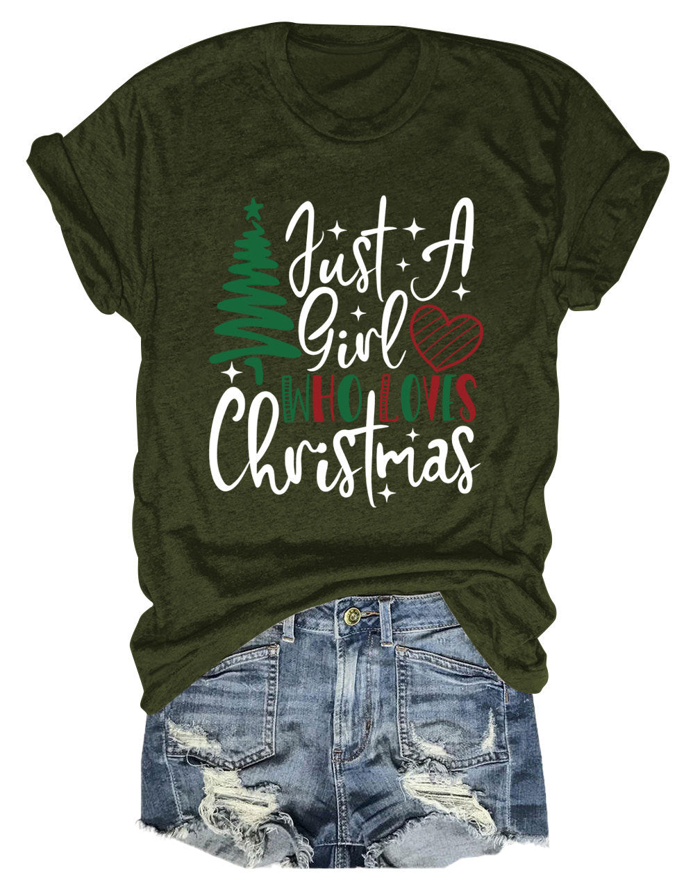 New Just A Girl Fun Christmas Tree Print Round Neck Short Sleeve Female Spot