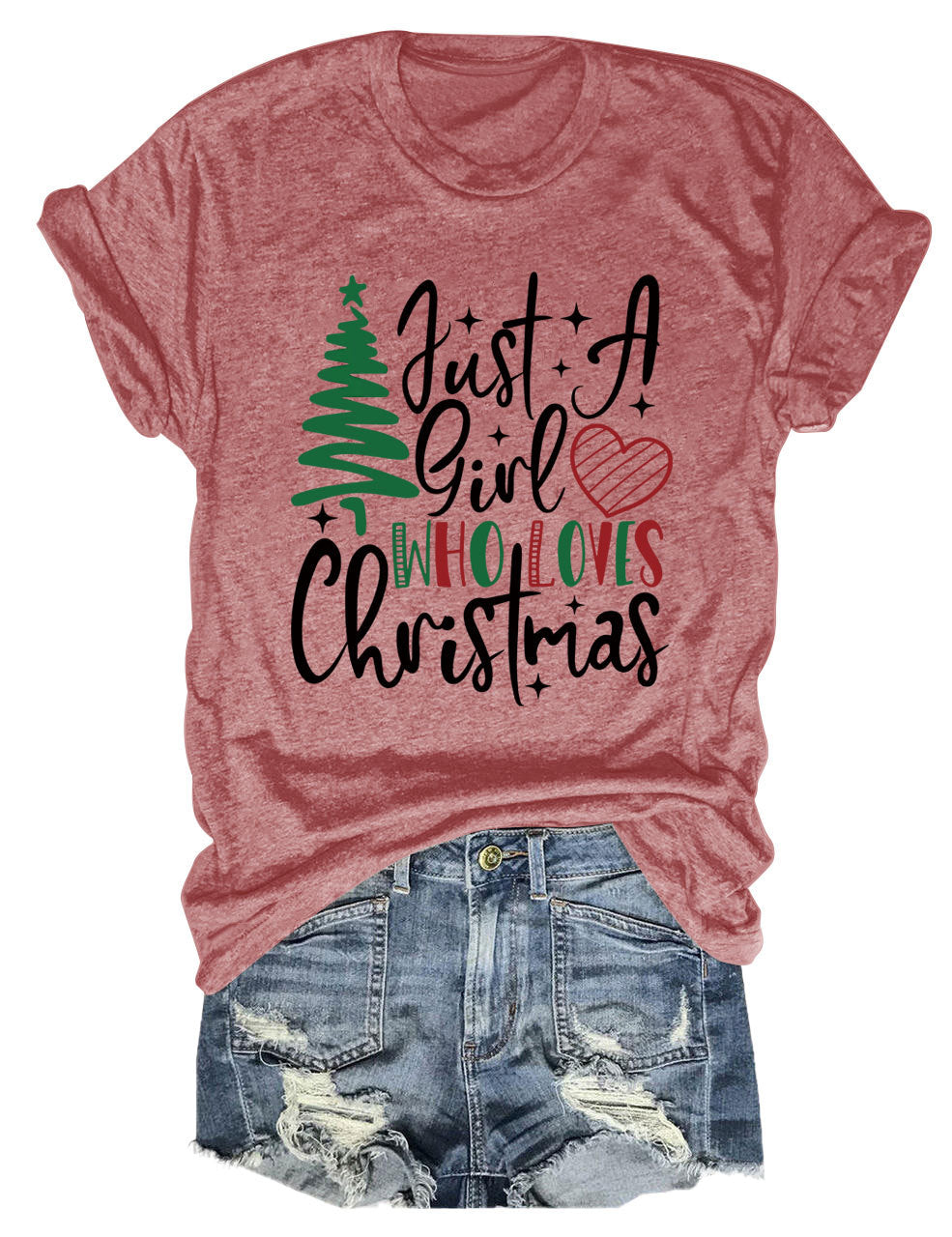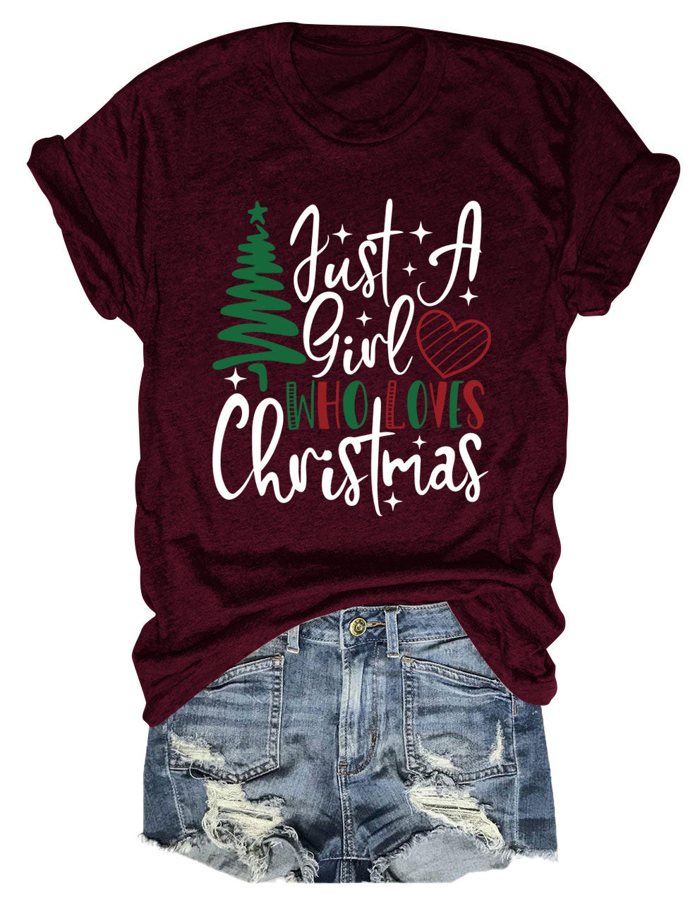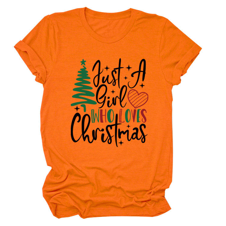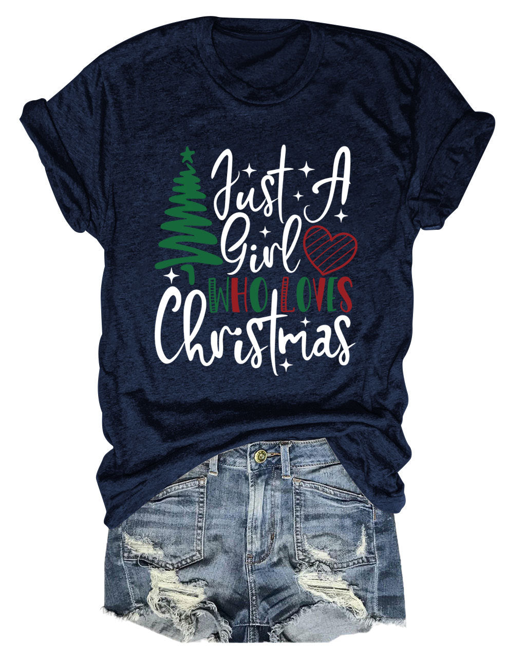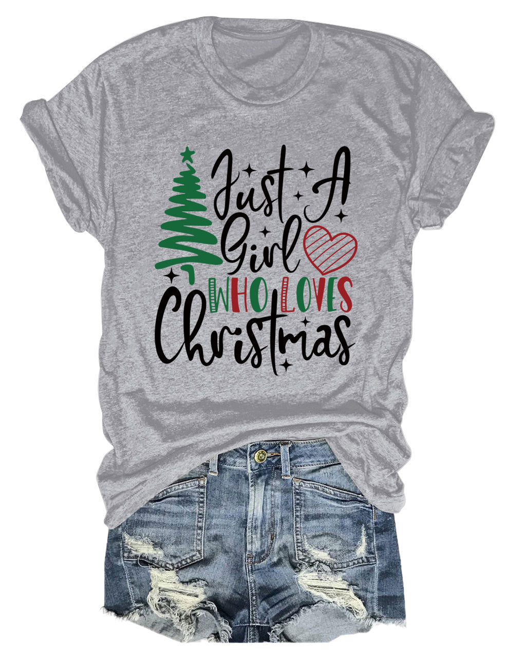New Just A Girl Fun Christmas Tree Print Round Neck Short Sleeve Female Spot