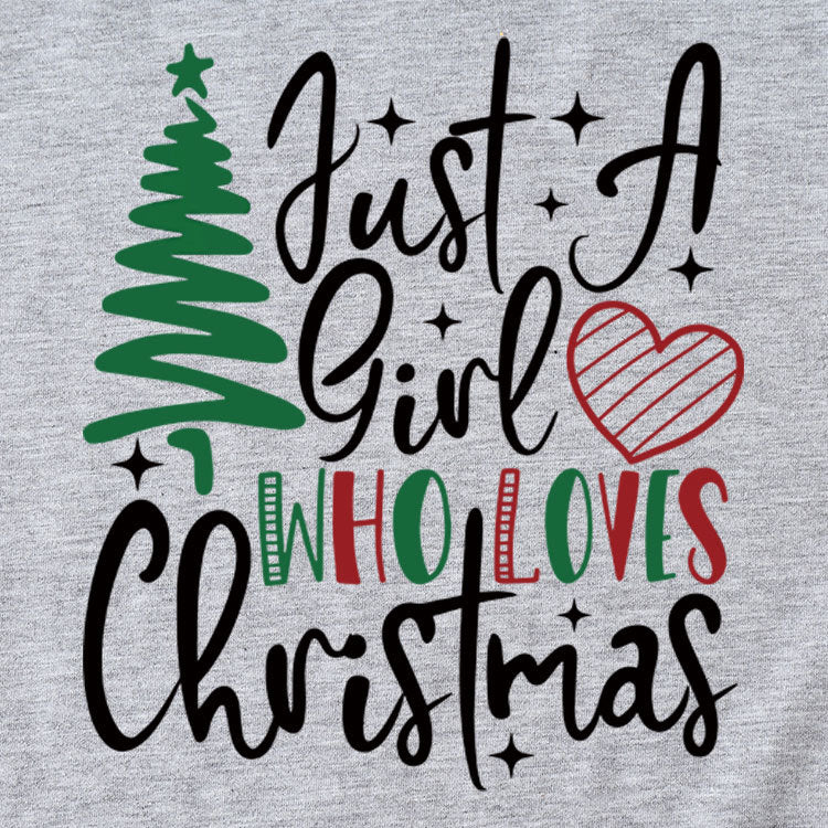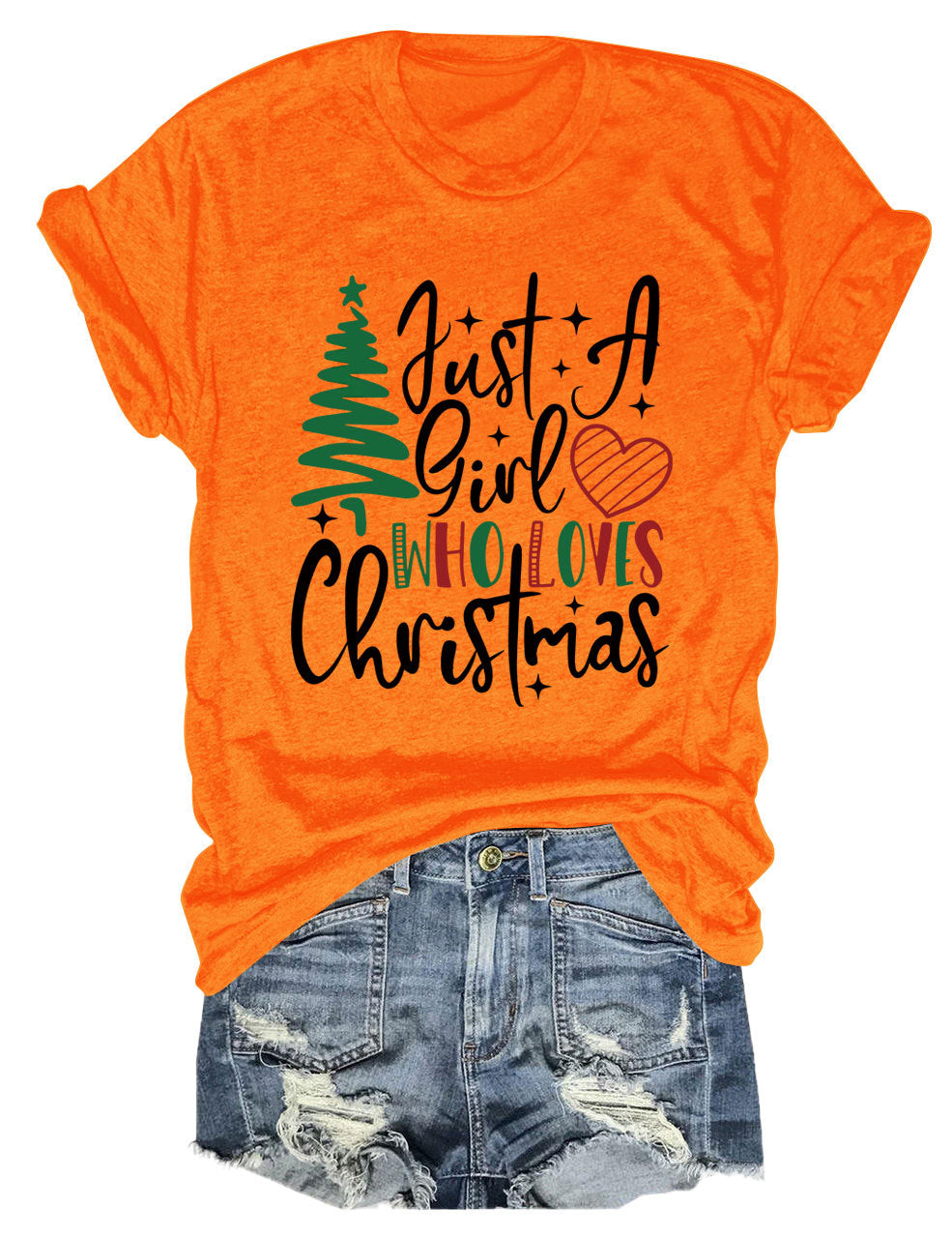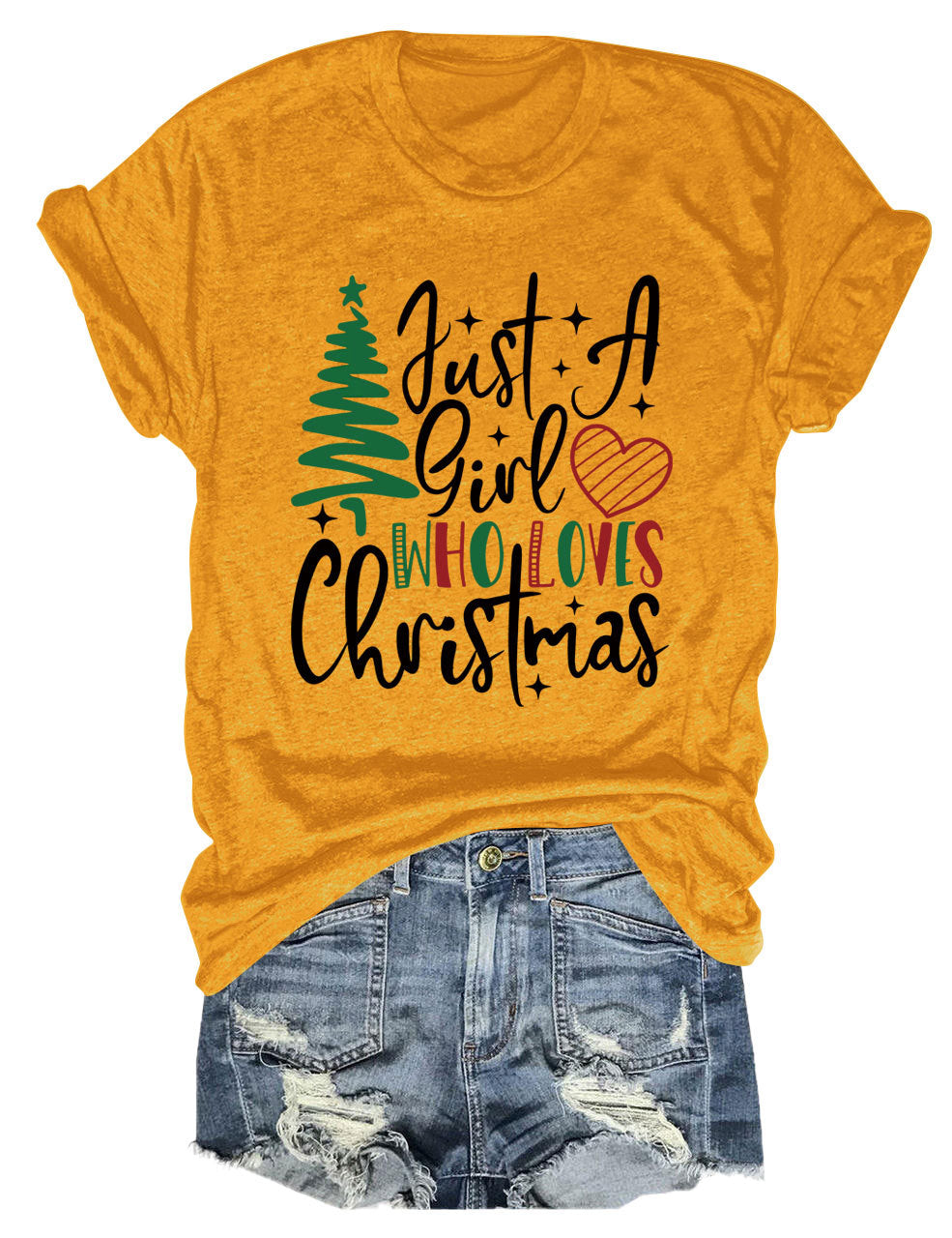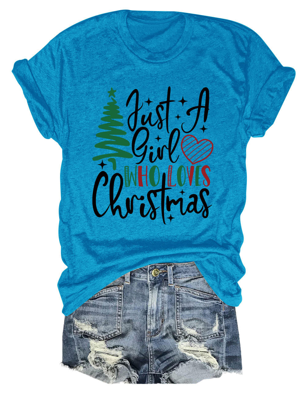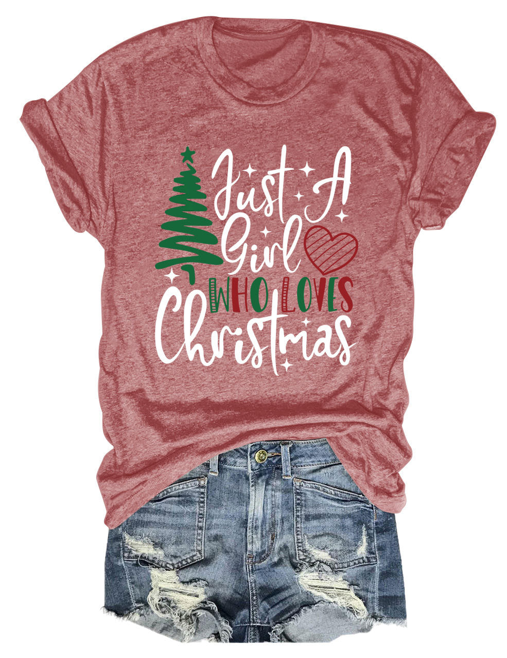 New Just A Girl Fun Christmas Tree Print Round Neck Short Sleeve Female Spot