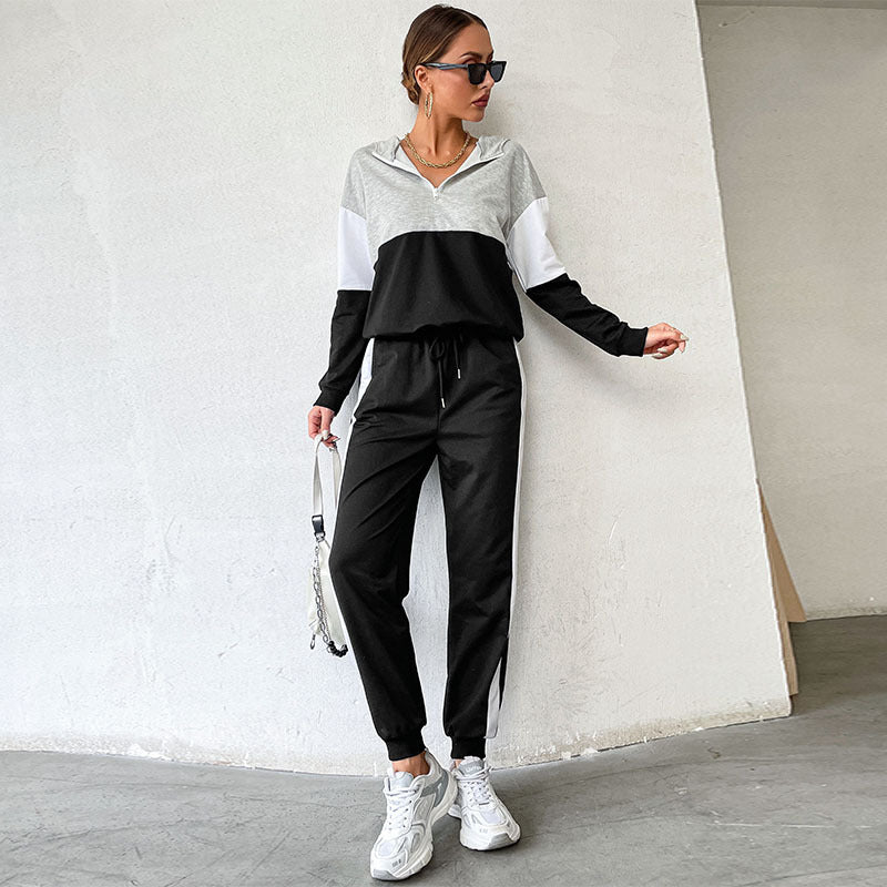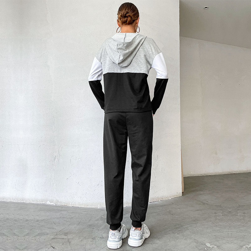 New Long-Sleeved Color Combination Hooded Fashion Casual Hoodie Set Women