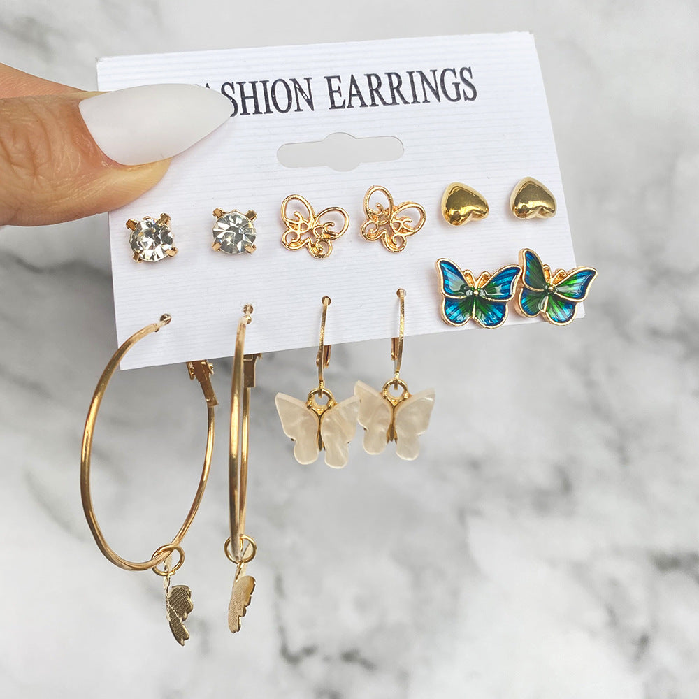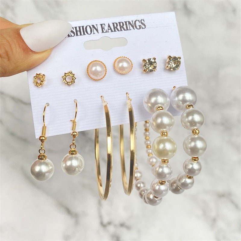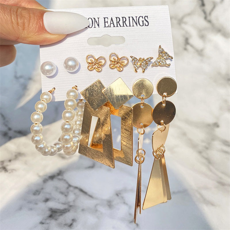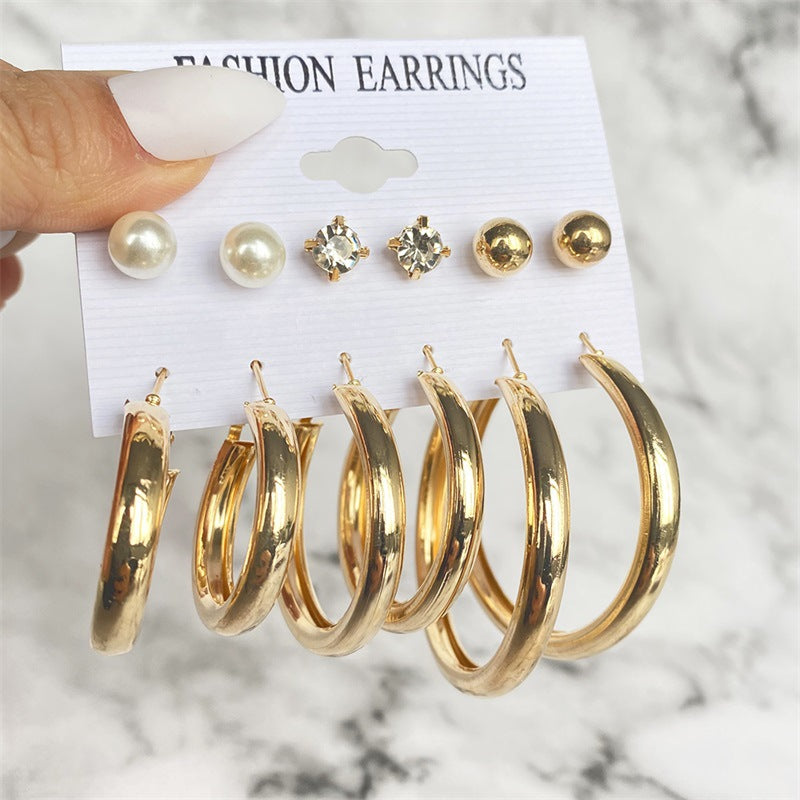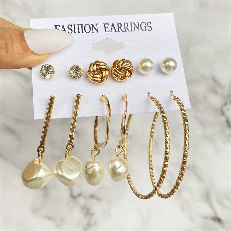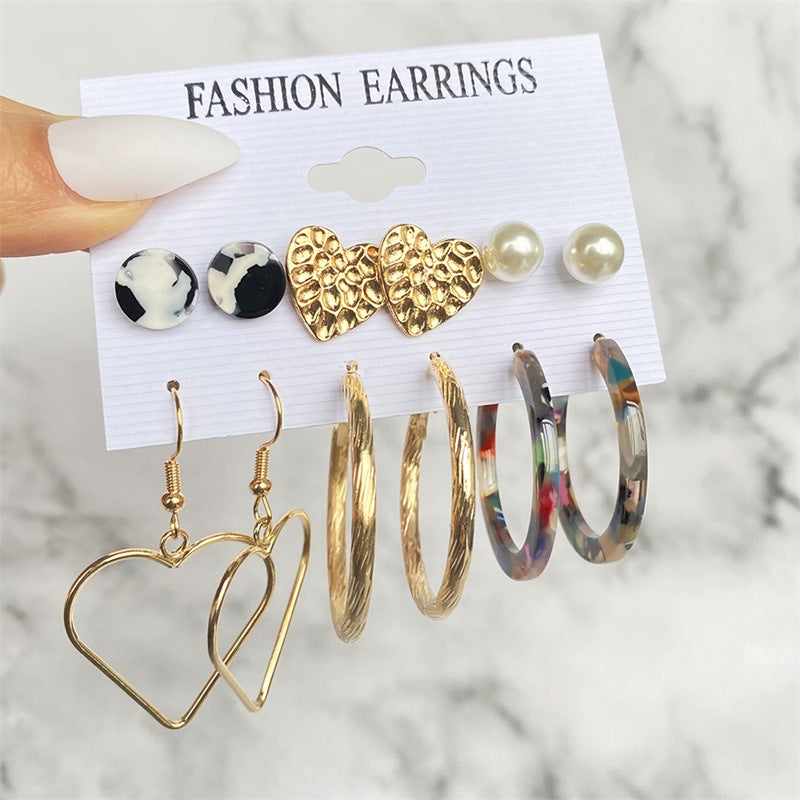 5 Sets New Retro Style Geometric Earrings 6 pairs Set Female Niche High-Grade Metal Stud Jewelry Set
